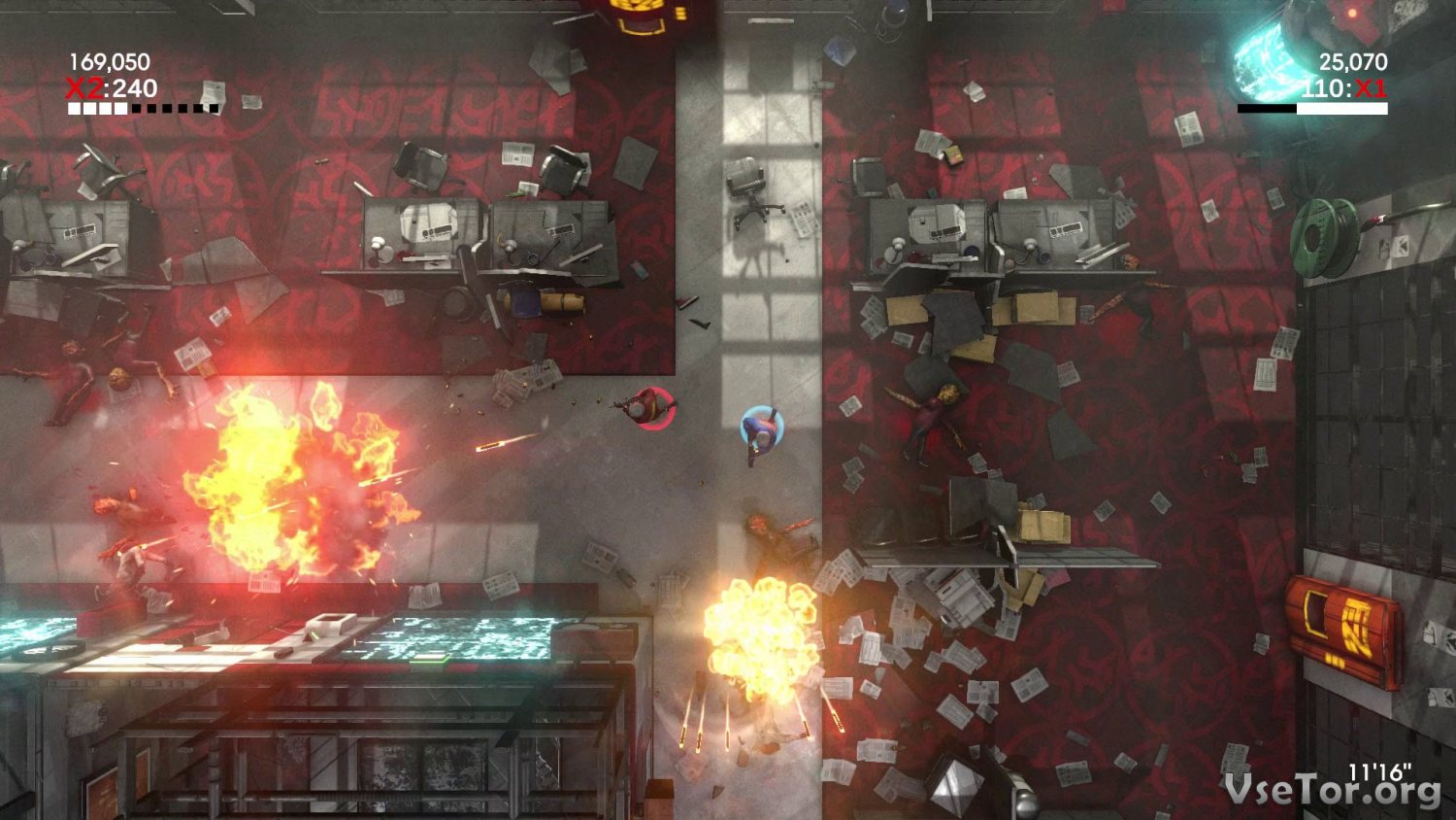 Игровой же процесс в первую очередь базируется на вполне традиционных механиках. Все происходит в режиме вида сверху. Вы попадает на какую-нибудь локацию с закрытыми специальным энергетическим полем дверьми, из которых то и дело выбегают мутанты-зараженные. Ну а дальше начинается самое интересное – вы должны уничтожать врагов всеми возможными способами.
