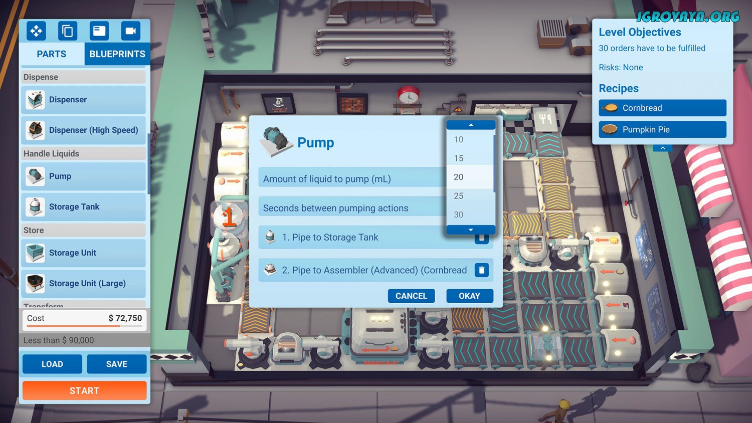 К слову, в Automachef есть два режима игры. Первый режим, это полноценная песочница, в которой вы сможете оборудовать кухню так, как захотите. Тут нет никаких ограничений, ни в плане оборудования, ни в плане ресурсов, ни в плане тайминга. Второй же режим, это режим сюжетной кампании, в котором вас ждут многочисленные задания, тайминги, испытания, море условий и бонусов, и не только.