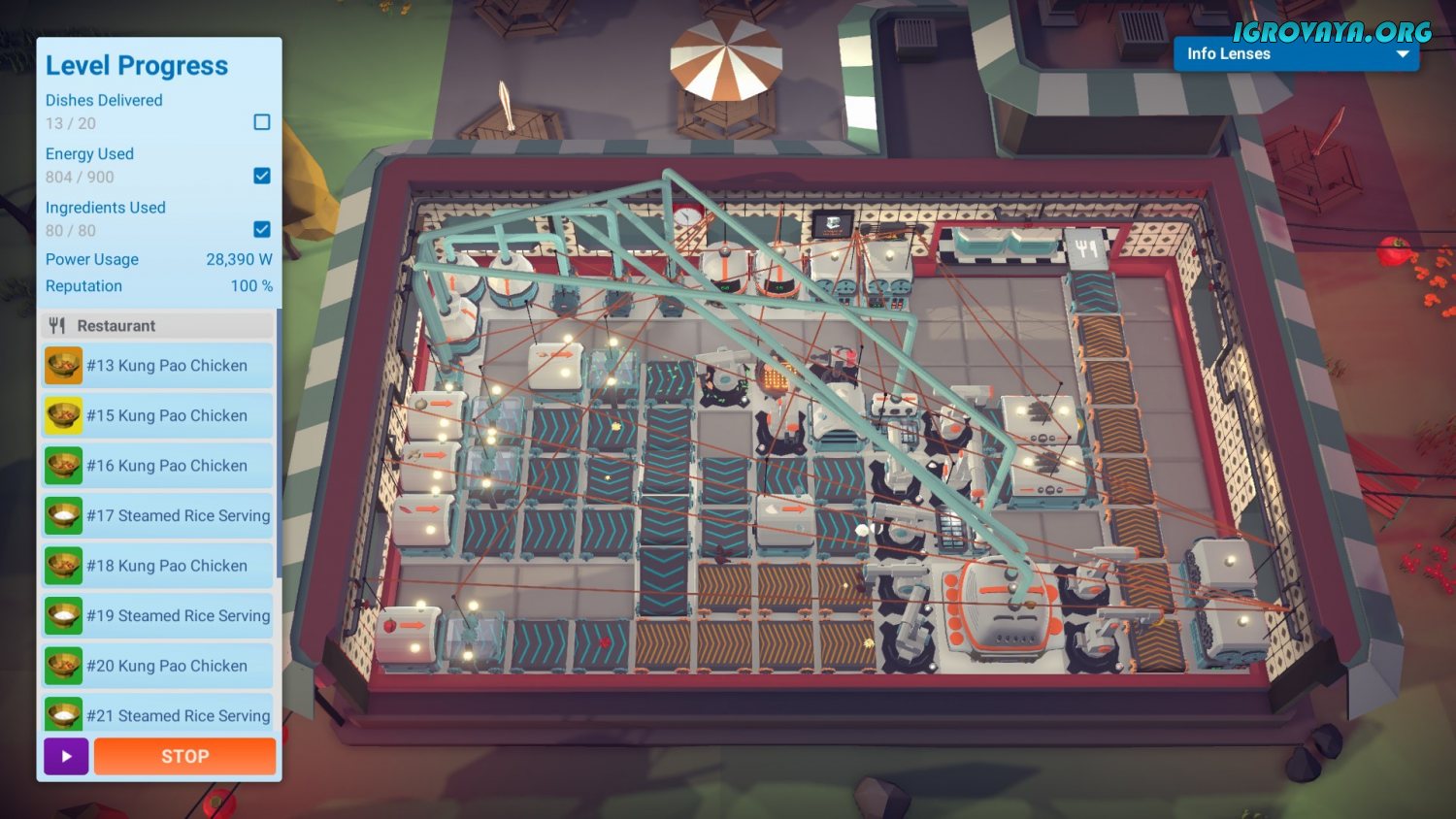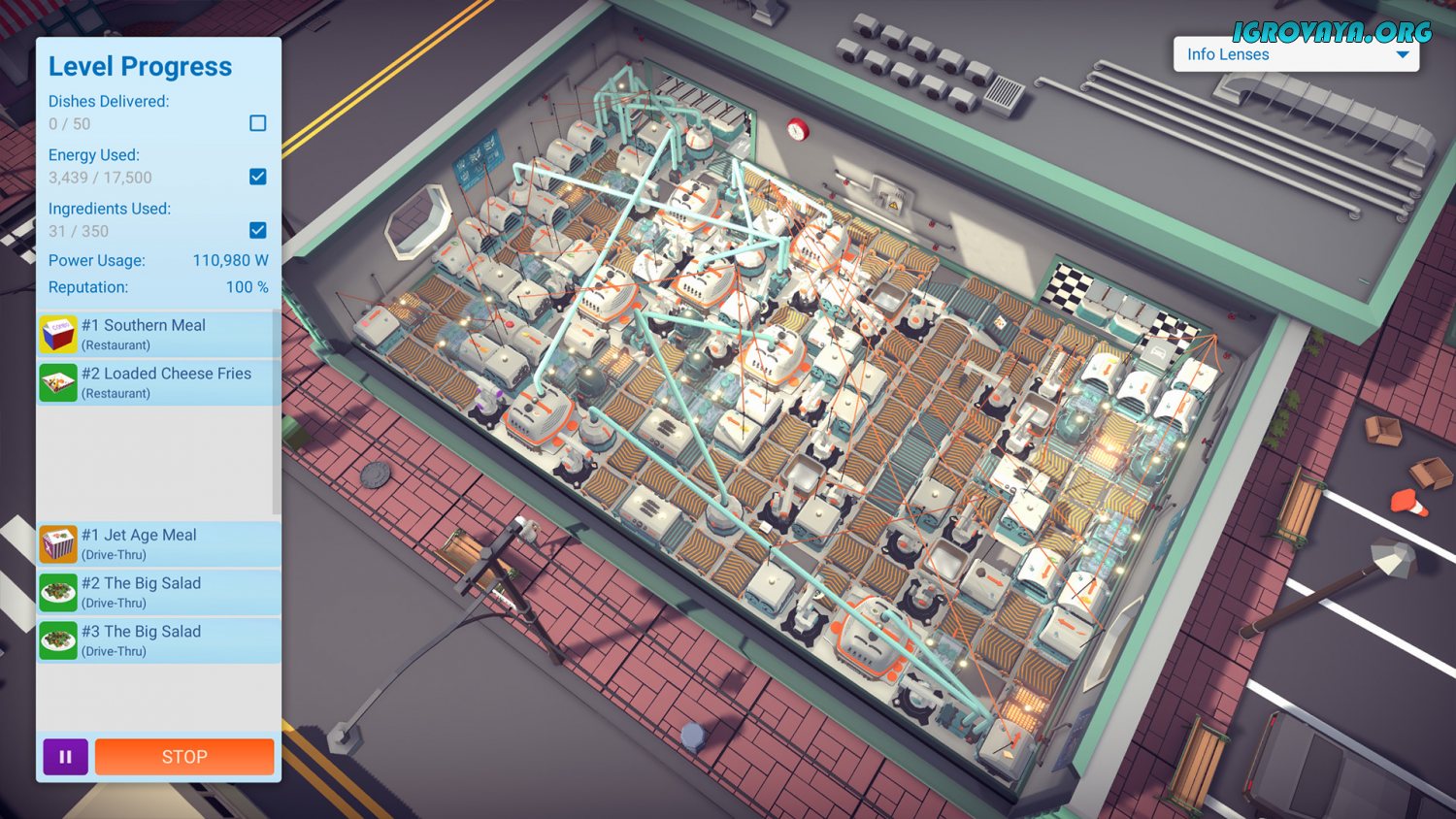 Суть игры заключается в следующем – вы должны создать такую кухню, на которой производство любой еды будет автоматизировано. Для этого вам придется поставить в помещение нужное оборудование и создать такую сеть приборов, чтоб все оборудование в ней работало как одно целое. Но не думайте, что будет легко, ведь на самом деле это нелегкий труд…