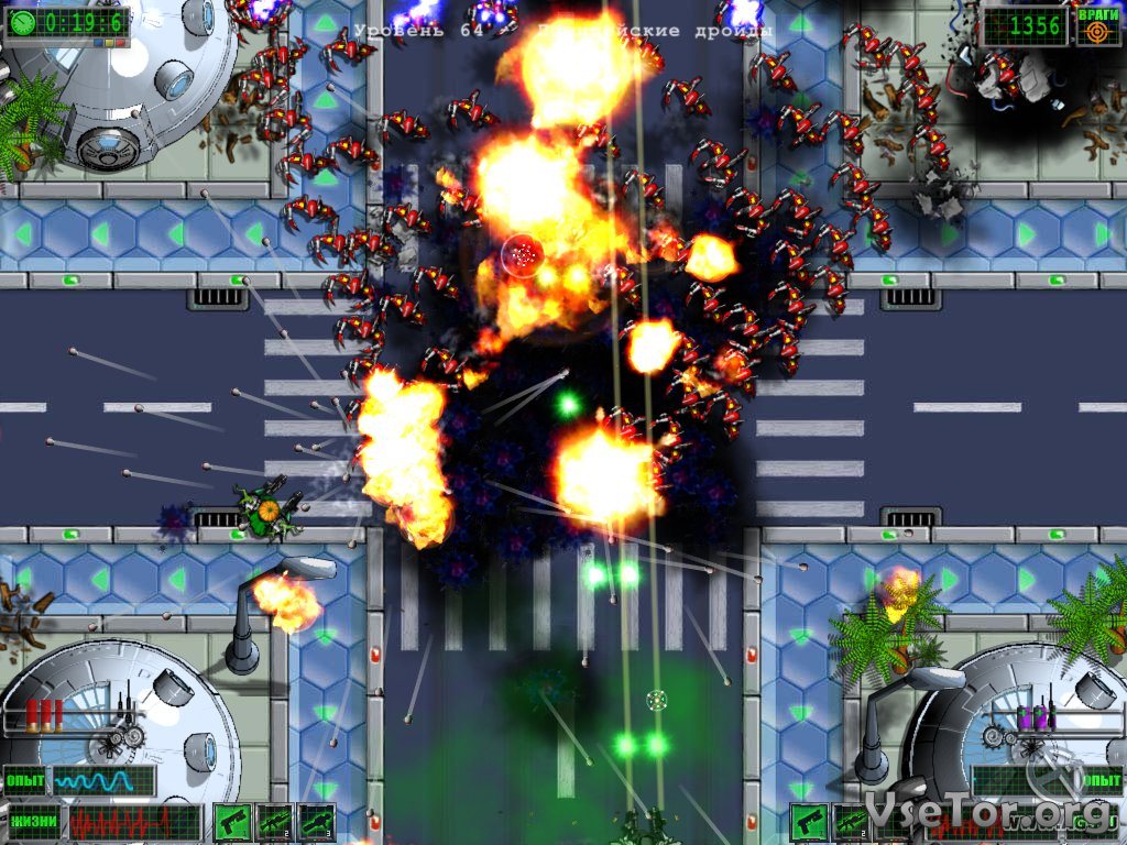 Самое же главное достоинство этой игры, это то, что здесь самый настоящий хардкор. Противники будут сотнями нападать на вас со всех сторон, и вам ничего не остается, кроме как начать отстреливаться от них с помощью всего, что есть у вас под рукой. Сражайтесь, убивайте их из всего, что получаете в ходе сражений, прокачивайтесь, обретайте новые пушки и способности, и делайте все, что нужно, но одолейте силы врага. Но не забывайте и о боссах, которые также время от времени будут создавать вам кучу проблем.