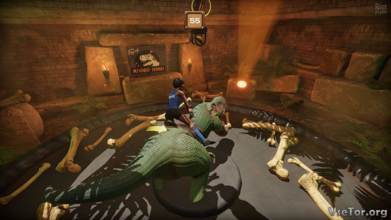 И первым делом стоило бы сказать об испытаниях. Игра основана на одноименной телепередачи, и большинство испытаний, которые вы будете проходить в этой игре, взяты именно из нее. Вас будут ждать самые разные испытания в различных условиях. Где-то вам придется побывать на родео с динозаврами, пытаясь удержаться на спине динозавра, что должен вас скинуть, а где-то придется даже покататься на модифицированных погрузчиках с боксерской перчаткой. Вариантов много, и каждый раз вам будет предлагаться что-то новое.