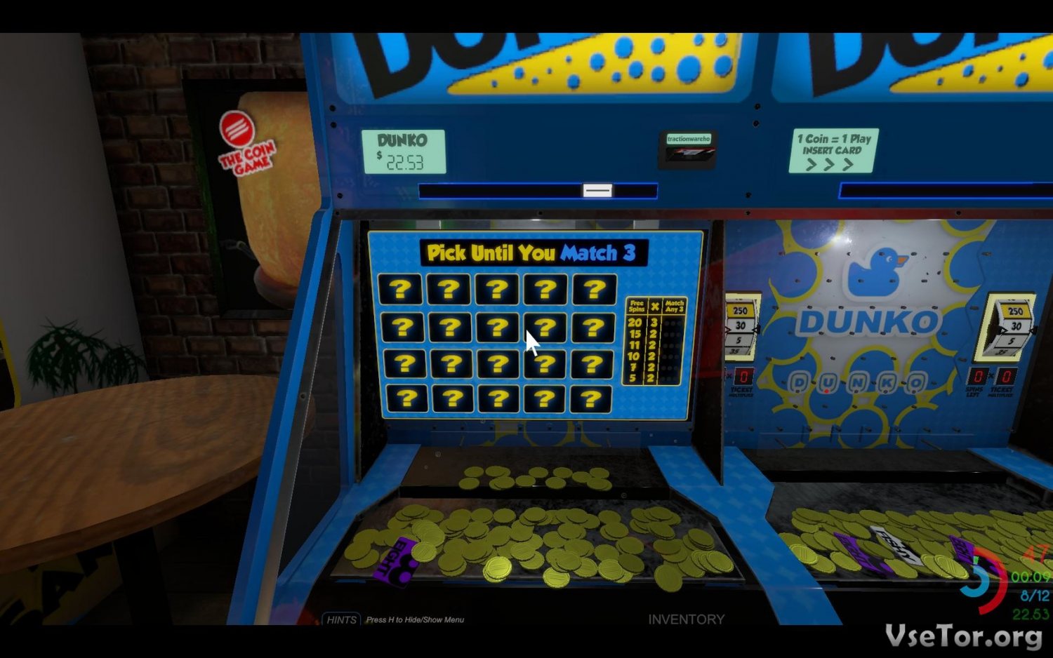 Самое интересное в The Coin Game заключается именно в автоматах, на которых нужно играть, чтоб заработать побольше призов. Тут вам и различные автоматы с головоломками, и различные стрелялки, и конструкторы, и многое другое. Вам лишь остается играть и зарабатывать награды, которые потом и вовсе можно разместить в своем гараже, или же сдать владельцу местного ломбарда. У нас вы можете скачать The Coin Game торрент последнюю версию бесплатно на компьютер.