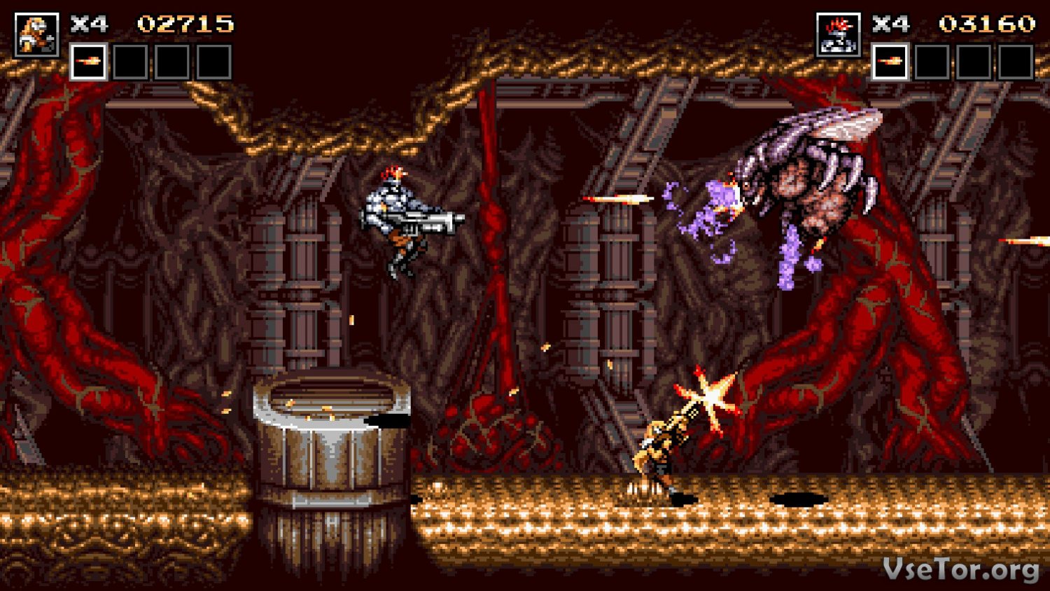 Самое же главное достоинство Blazing Chrome заключается в том, что все здесь происходит буквально налету. Атмосфера в игре накаляется с невероятной скоростью, роботов с каждым разом становится все больше и больше, а скорость происходящего такова. Что порою просто не успеваешь наводиться на цели. И при этом каждый раз вы будете сталкиваться все с новыми и новыми непреодолимыми на первый взгляд преградами.