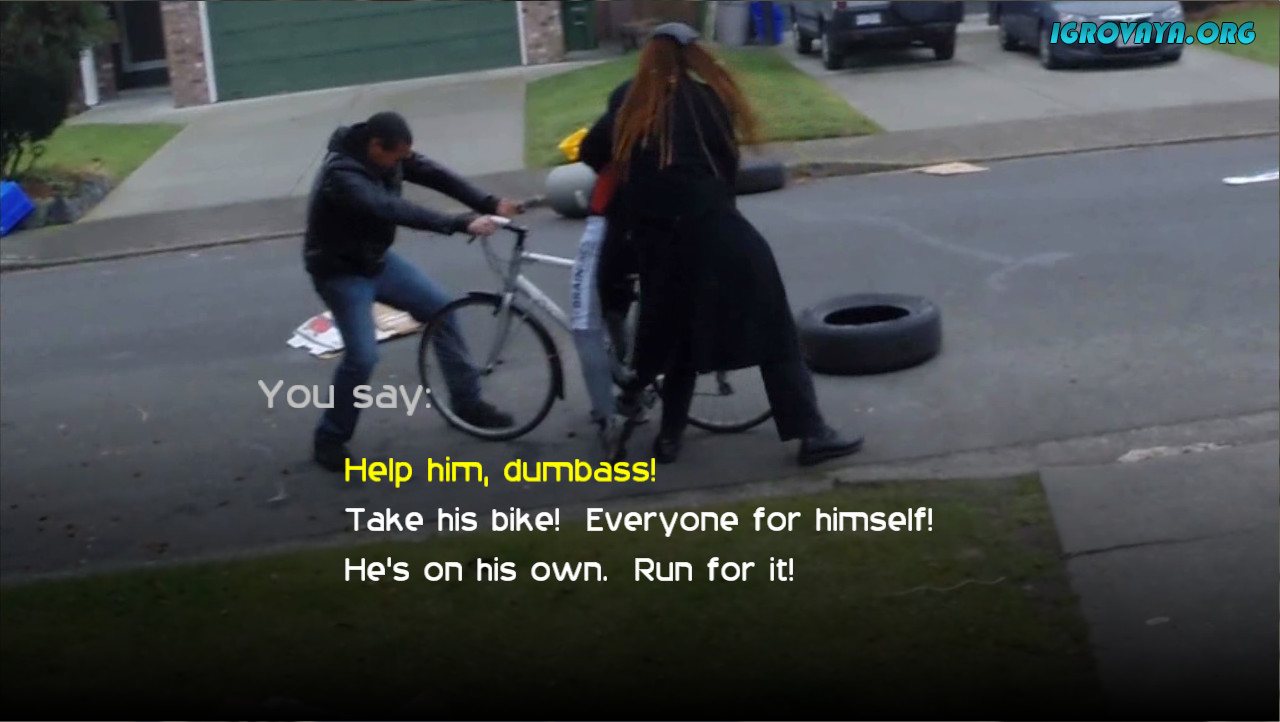 Игровой же процесс в этой игре довольно прост и основывается на механике выжимания определенных клавиш в нужное время. По крайней мере, это одно из немногих направлений геймплея. Вы будете видеть перед собой время от времени надписи, в которых будет говориться о нажатии той или иной кнопки. В зависимости от того, как быстро вы будете это делать, главным героем будут осуществляться те или иные действия. Например, нажав в нужный момент нужную кнопку, вы сможете увернуться от удара, или же перепрыгнуть забор, или и вовсе попросту убежать. Вариантов более, чем предостаточно.
