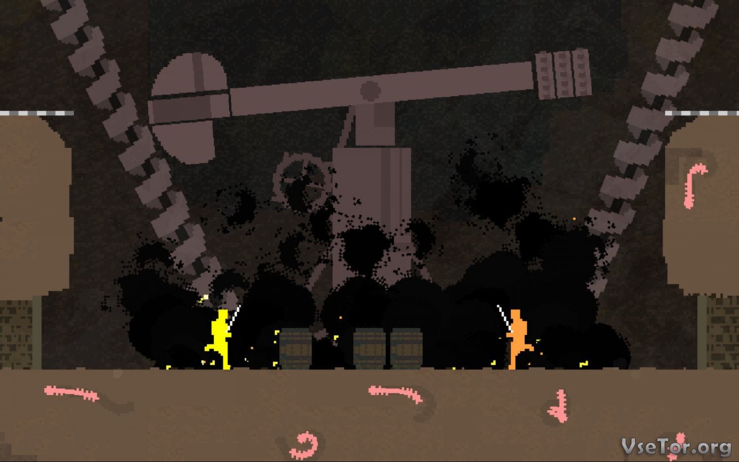 Nidhogg – это крутой спарринг-экшен, в котором игрокам предлагается схлестнуться в фехтовальных битвах с противником и попытаться добежать до финального экрана, убивая попутно возрождающегося врага…