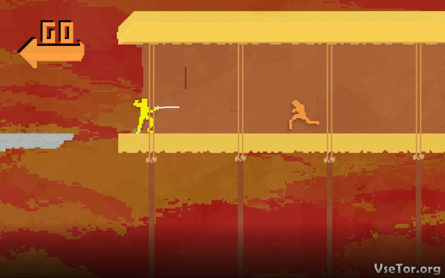 Суть игры заключается в следующем – вы будете участвовать в фехтовальных поединках, и должны будете побеждать врага до тех пор, пока не достигнете финального экрана локации с его стороны. В вашем распоряжении будет лишь меч, и с его помощью вы должны будете проливать кровь противника. Но при этом каждый раз противник будет воскрешаться, как и вы в случае смерти, и вы снова должны будете убить его. После каждой смерти вы сможете немного продвинуться вперед, до точки воскрешения противника.