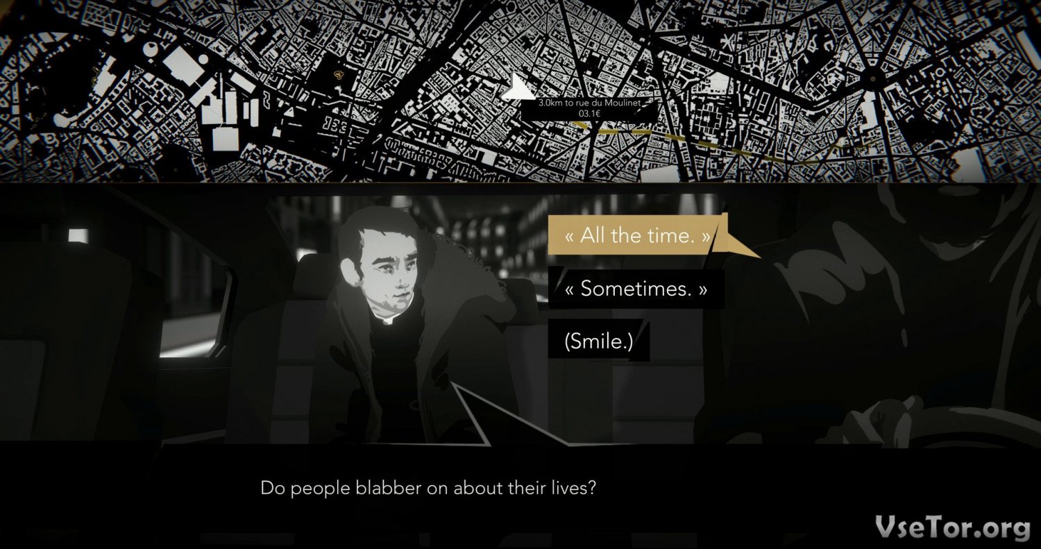 Суть игрового процесса в Night Call сводится к использованию самых простых механик. Первая же и самая главная заключается в том, что вы должны вести диалог с потенциальными клиентами, да таким образом, чтоб люди начинали верить вам и доверяли свои секреты. Одни будут рассказывать вам о своих сокровенных тайнах, никаким образом не относящихся к делу, в то время как другие могут даже указать на убийцу. Вторая же механика заключается в симуляции жизни – помимо общения, вы должны будете заниматься и обычной рутиной. Например, вы должны будете таксовать, а для этого вам нужен будет бензин, на который вы как раз-таки и будете зарабатывать. Все эти факторы взаимосвязаны и вам придется научиться их совмещению. У нас вы можете скачать Night Call торрент последнюю версию бесплатно на компьютер.
