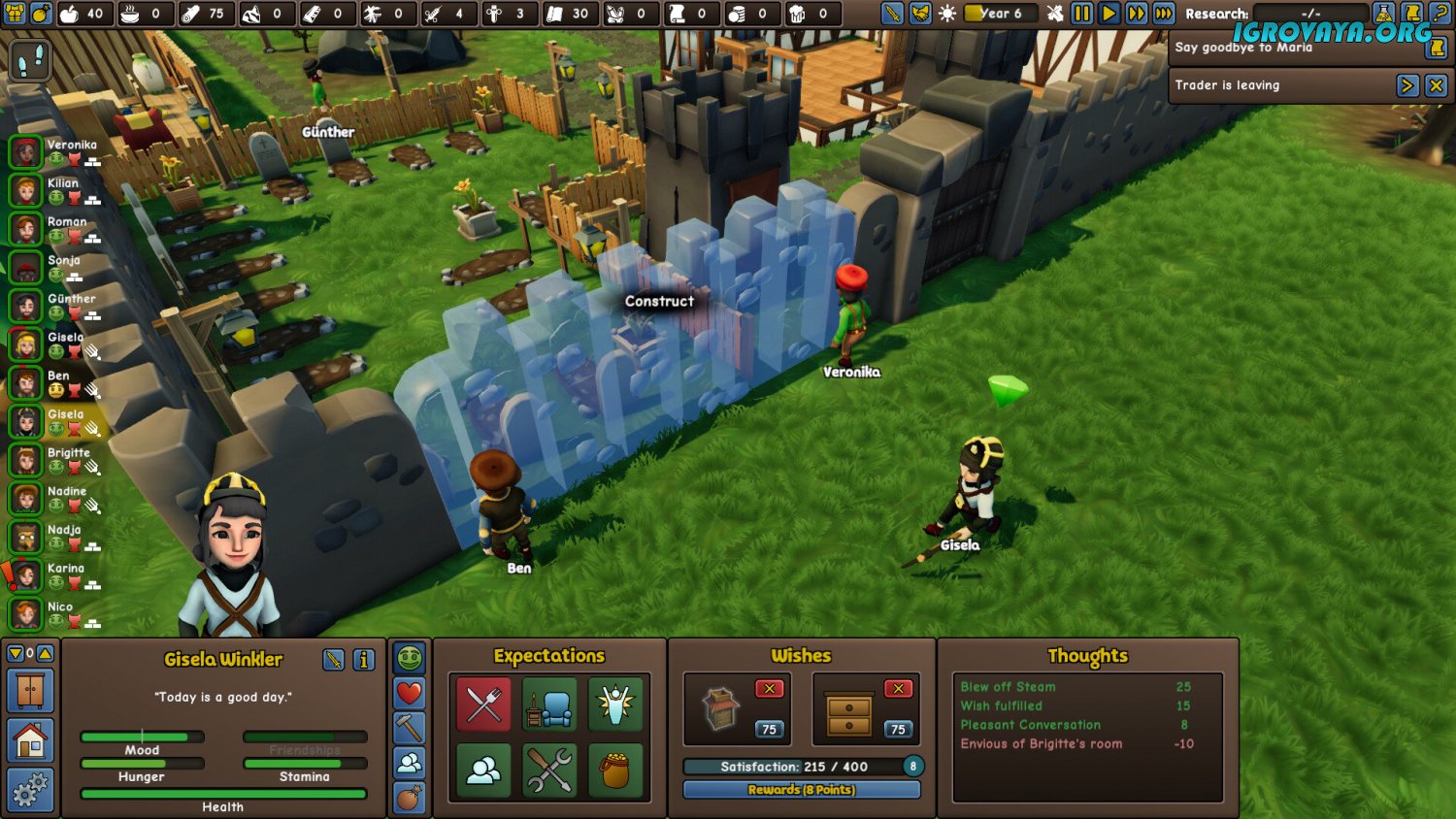 Построив дома для колонистов и обеспечив их едой, вы сразу же погрузитесь в череду новых испытаний и проблем. Ваши колонисты будут вечно чем-то недовольным, они все время будут в чем-то нуждаться, и самое интересное заключается в том, что их желания нельзя игнорировать. Если какое-то желание колониста не исполняется длительный период времени, он впадает в депрессию, а со временем у него и вовсе может случиться нервный срыв – тогда он может натворить что угодно, вплоть до нападения на сожителя.