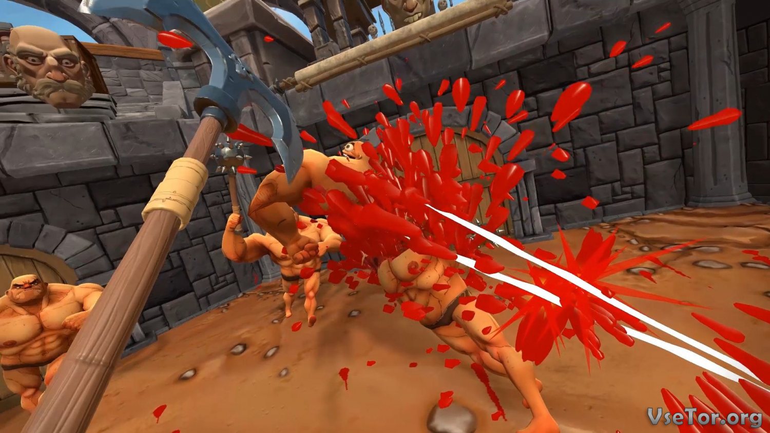 Еще одно достоинство Gorn заключается в ассортименте вооружений. В вашем распоряжении будут самые разные оружия времен гладиаторов. Это и цепи, и копья, и мечи, и топоры, и булавы с огромными наконечниками и острыми кольями, и огромное количество другого холодного и метательного оружия. Но начинать вам придется с самого малого – в самом начале в вашем распоряжении будет лишь небольшая булава, и только со временем вы сможете открыть что-нибудь новое. При этом противники будут вооружены всем тем, доступа к чему у вас еще не будет…