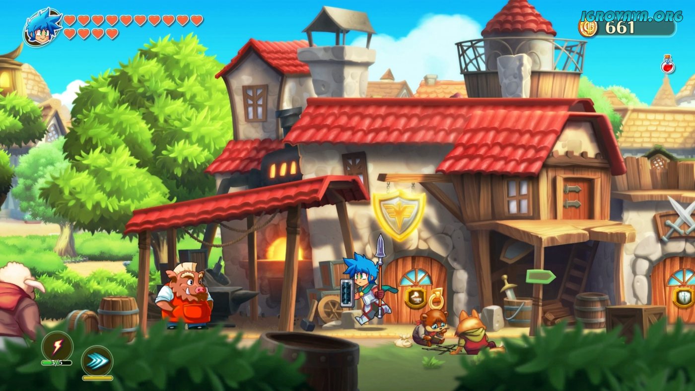 Разработчики не стали придумывать ничего нового и задействовать в Monster Boy and the Cursed Kingdom практически все те же механики, что были и в предыдущей игре, но при этом преобразили ее и сделали более красивой, яркой, и захватывающей. Теперь вас ждет переработанная графика, отличная анимация, колоритные персонажи, и яркий красивый окружающий мир, меняющий от локации к локации.
