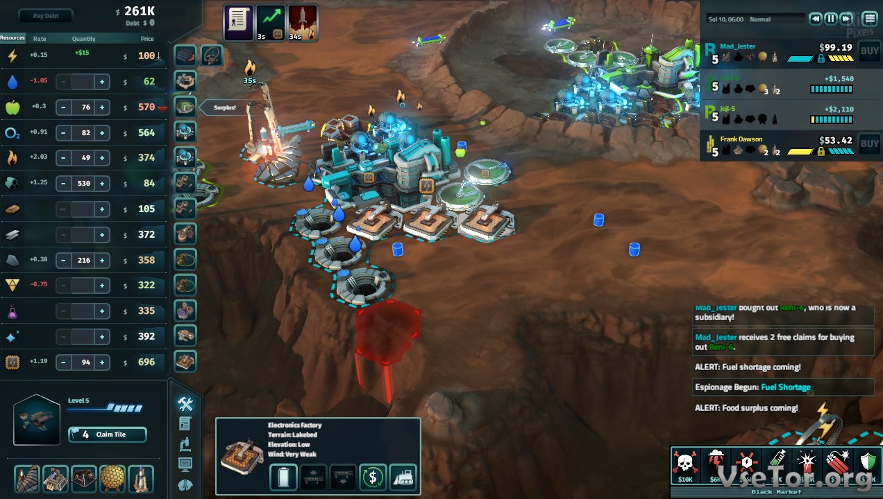 Отстаивать свое право на жизнь вам придется самыми разными способами. Добывайте ресурсы и продавайте их другим корпорациям, перепродавайте самые ценные ресурсы втридорога и зарабатывайте на наценках, заключайте контракты с разными корпорациями и следите за акциями других корпораций, развивайтесь и исследуйте марсианские просторы в поисках новых источников заработка.