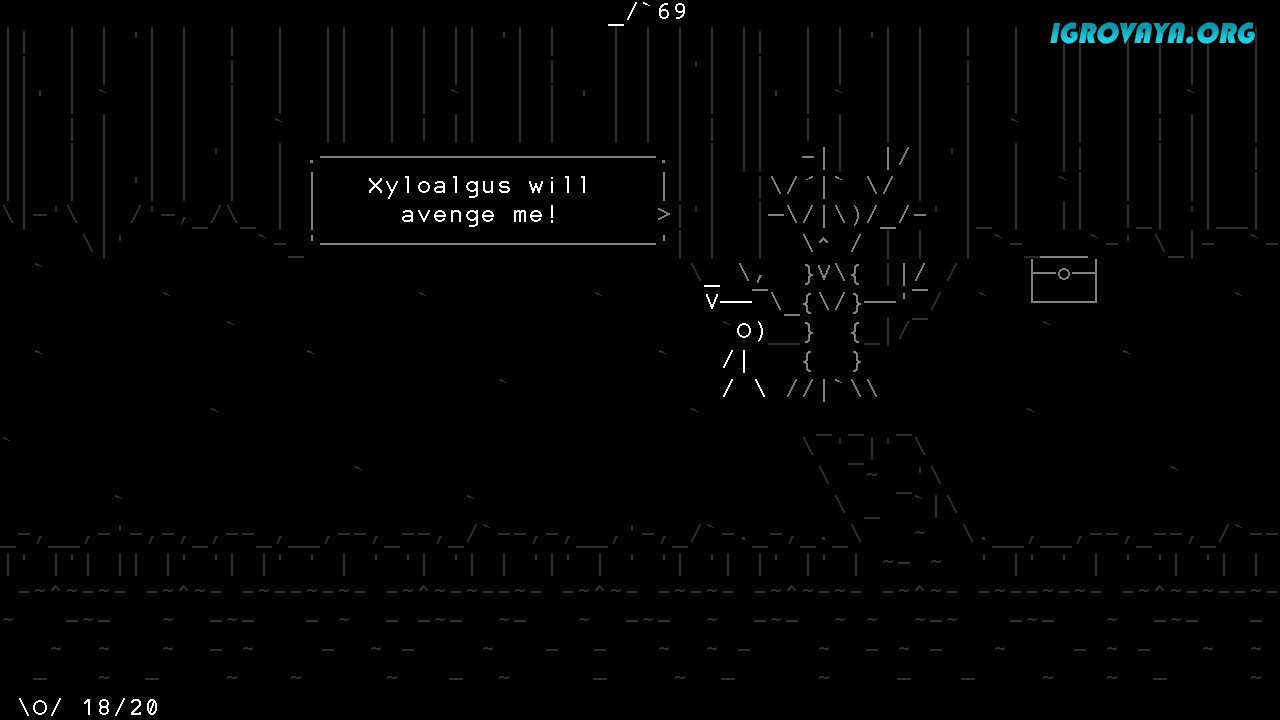 Главная же особенность этой игры заключается в ее визуальном оформлении. Тут вы не найдете красивых пейзажей или детализированных текстур, а сам мир нарисован на темном фоне и изображен с помощью символов и знаков. Вы будете видеть лишь контуры, не более того…