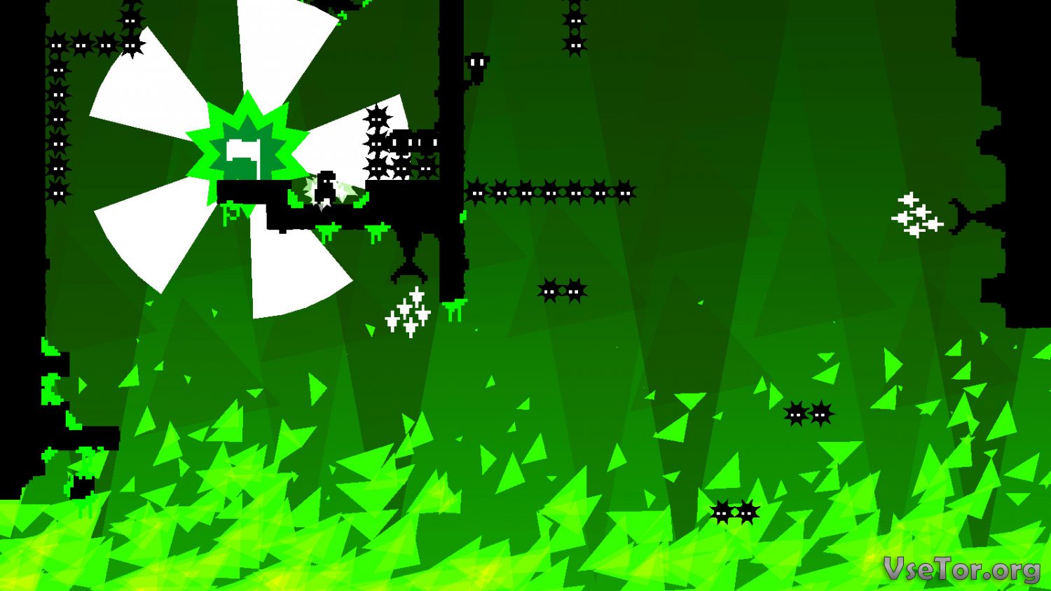 Что еще круче, так это то, что сами уровни тут очень разнообразны. С одной стороны, вам будут попадаться уровни, на которых в первую очередь будет использоваться реакция и скорость, в то время как с другой стороны будут уровни, на которых придется еще и очень быстро соображать, попутно пытаясь действовать максимально точно. Всего один пиксель влево или вправо, и все, герой погиб – в таком случае придется проходить весь уровень заново, что не всегда приятно.