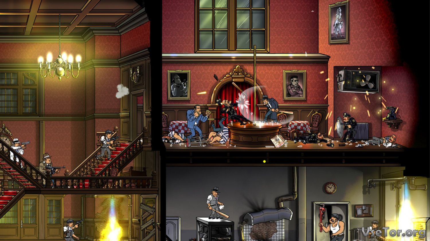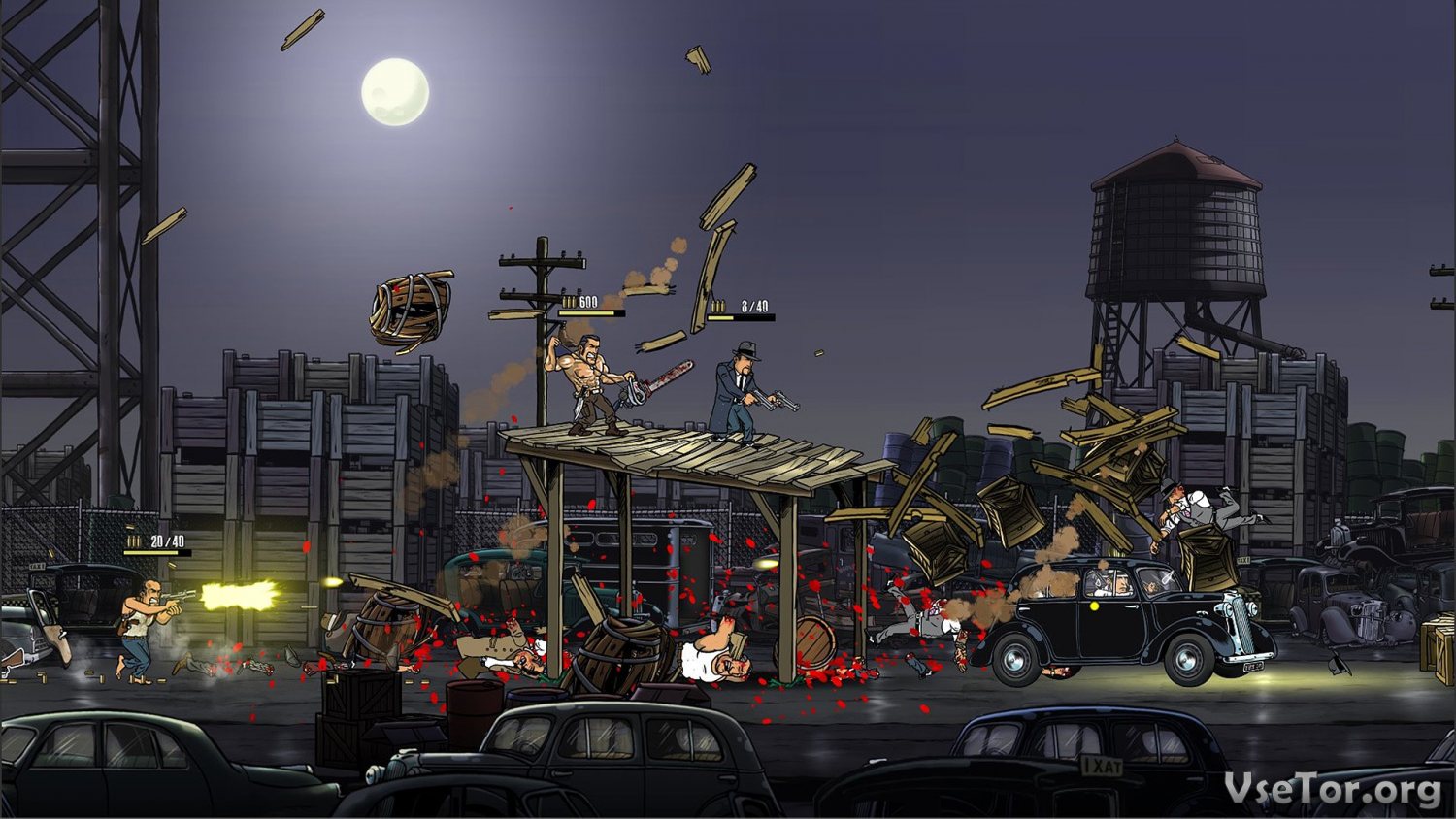 Что касается оружия и перестрелок, так в этот раз дело с ними обстоит еще круче. Во-первых, в вашем распоряжении теперь будет еще больше крутейших и по-настоящему мощных пушек, каждая из которых пригодится вам в сражениях. Во-вторых, сами перестрелки теперь выглядят намного эпичнее – вы можете пнуть врага ногой и следом за ним пустить пару пуль, разорвать врага на части, отстрелить противнику голову или сделать что-нибудь и вовсе просто невероятное. Ну а в-третьих, теперь сама анимация выглядит в разы лучше, благодаря чему и сама атмосфера кажется. Будто накаляется прямо на глазах. У нас вы можете скачать Guns, Gore and Cannoli 2 торрент последнюю версию бесплатно на компьютер.