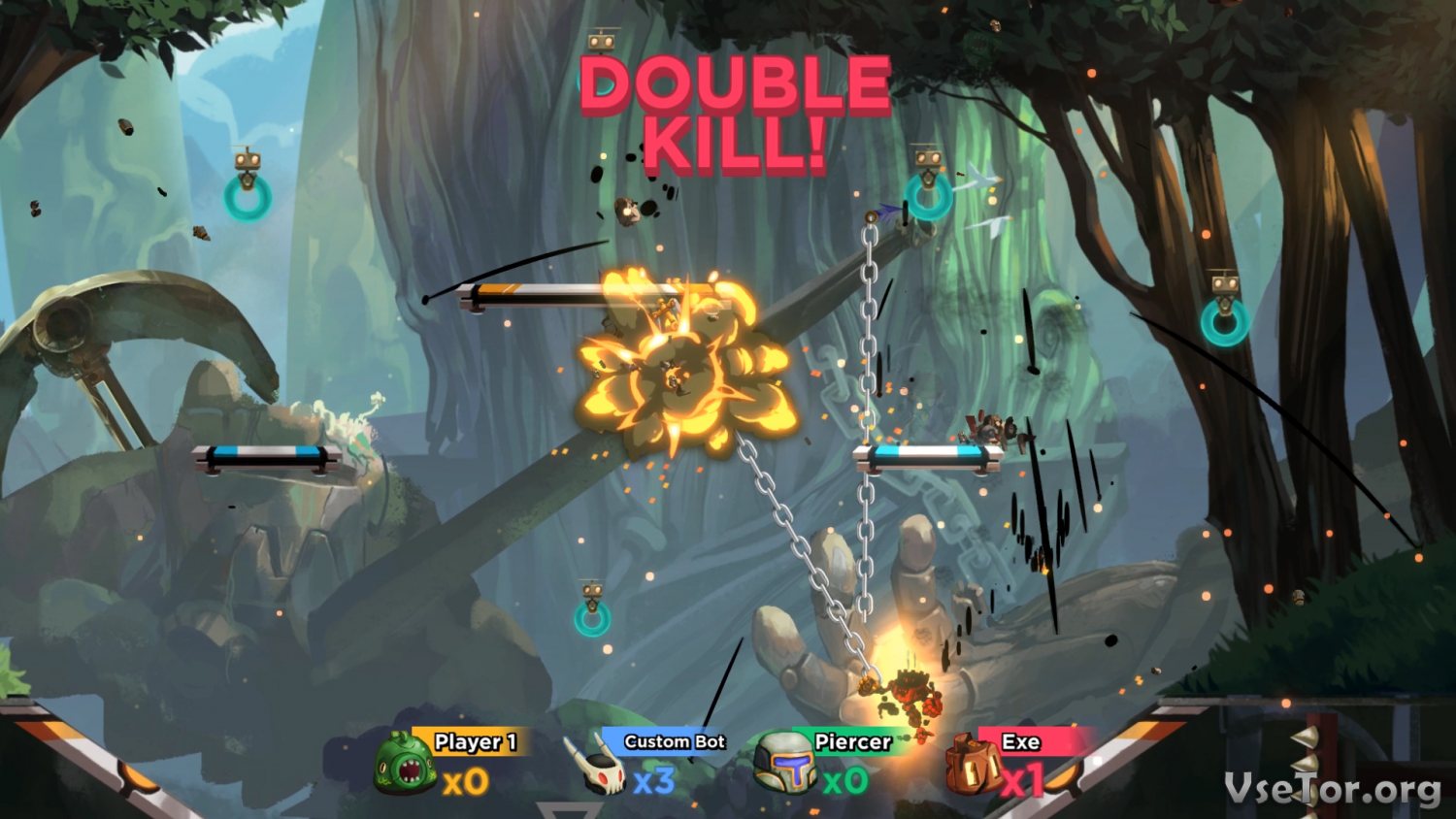 Отдельно же стоило бы сказать об игровых режимах. Более десятка режимов будет ждать вас в Hookbots, и каждый режим по-своему уникален. Например, в одном режиме придется бороться за флаг и его удержание, в другом придется просто уничтожать врагов, пока у них не закончатся роботы, а в третьем режиме нужно будет победить босса. А еще тут имеется режим гонок, бомбы, и не только. В общем, скучать в этой игре вам точно не придется… У нас вы можете скачать Hookbots торрент последнюю версию бесплатно на компьютер.