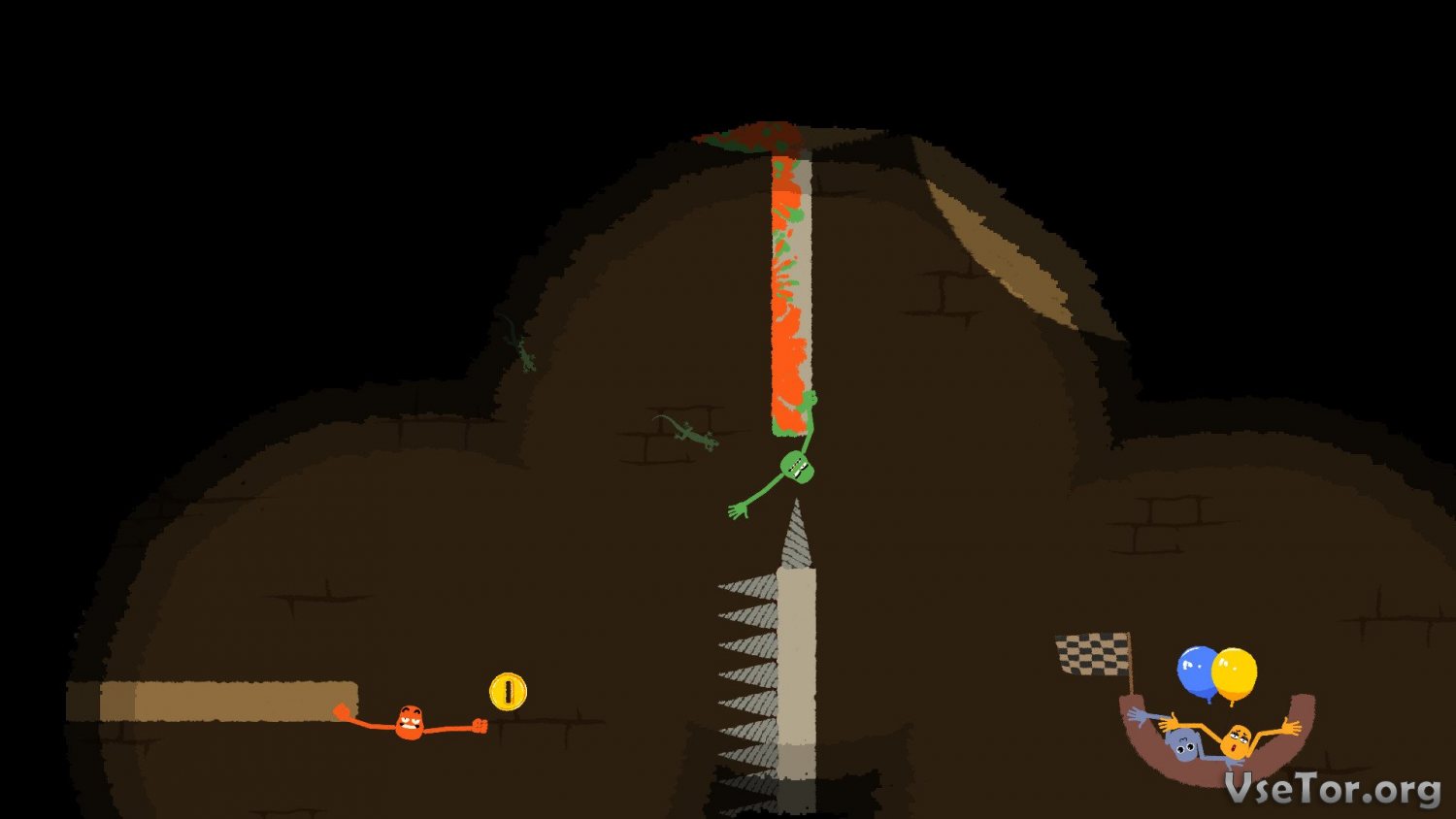 Мало того, что сами персонажи имеют лишь головы и руки, так они еще и липнут ко всему, что можно отнести к разряду поверхности или плоскости. Управлять ими очень нелегко – придется освоить физику, привыкнуть к самим движениям персонажей, и научиться преодолевать преграды, которых на каждом новом уровне будет становиться все больше и больше. Причем, если в самом начале уровни будут маленькими и простыми, то уже с пятого уровня начнут появляться пропасти, преграды, шипы, разрывающие героев на части, и многое другое. А еще в некоторых уровнях нужно будет и предметы переносить, что тоже не так уж и просто.