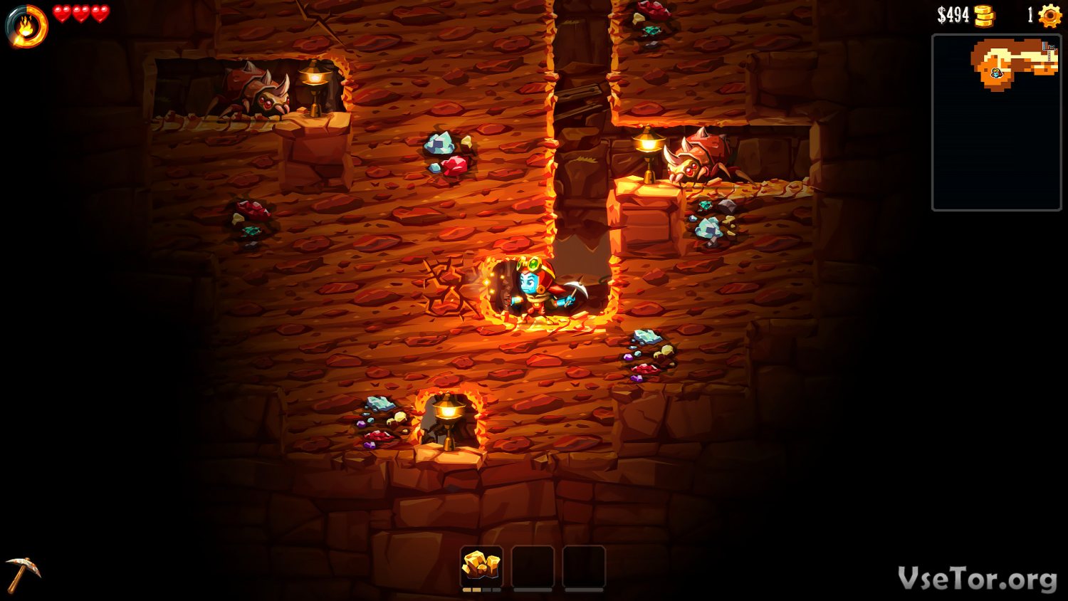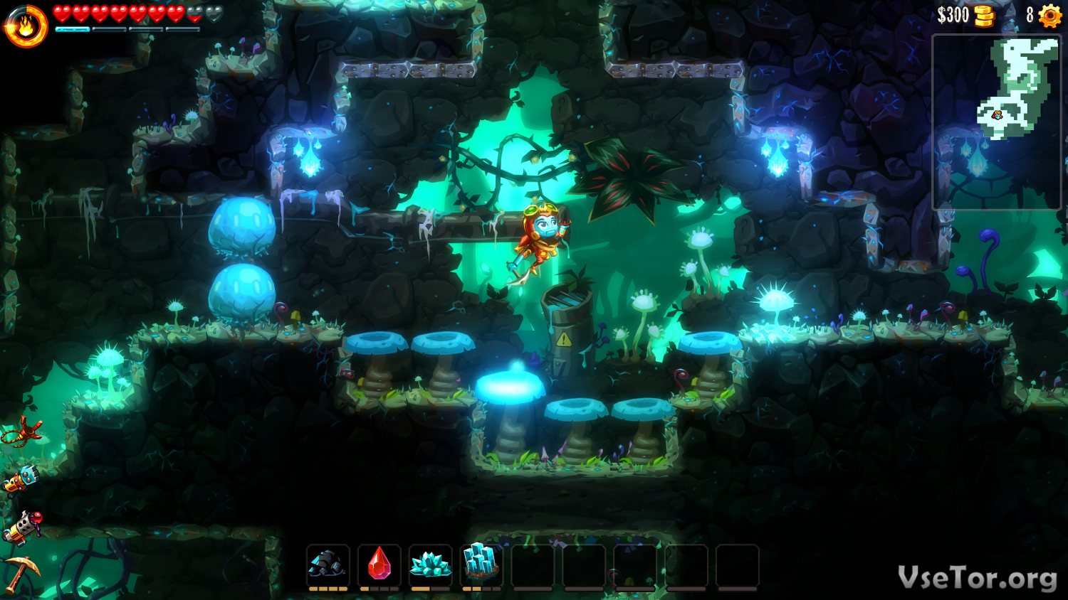 В остальном же Steamworld Dig 2, это все тот же платформер с видом сбоку. Копайте землю и спускайтесь как можно глубже, сражайтесь с обитателями подземного мира и представителями сил Зла, прокачивайтесь, исследуйте подземный мир и вылезайте наружу, чтоб пообщаться с другими роботами, и просто выживайте. У нас вы можете скачать SteamWorld Dig 2 торрент последнюю версию бесплатно на компьютер.