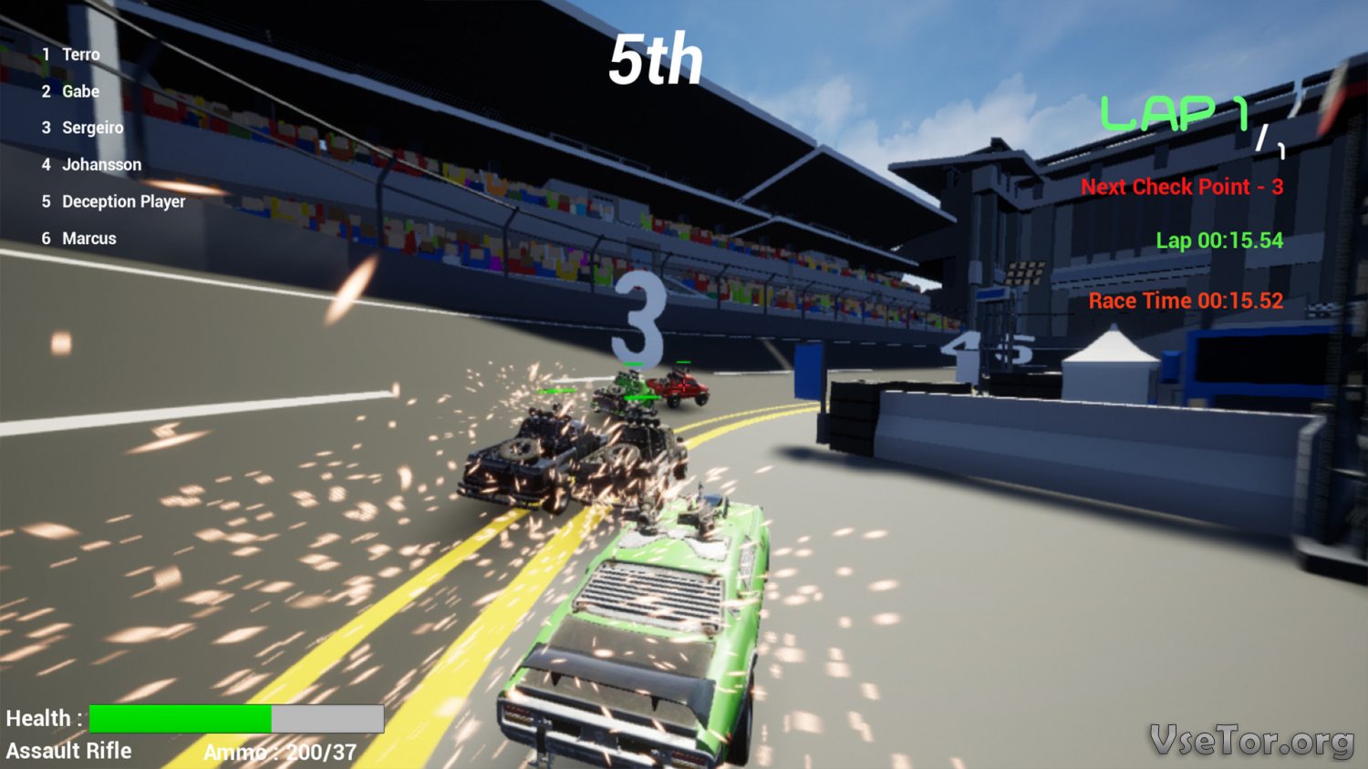 В остальном же все довольно просто – вам нужно лишь мчаться вперед и уничтожать противников, лететь до финиша без оглядки и побеждать, чтоб открывать новые виды оружия, машины, и трассы. Мчитесь, обгоняйте соперников, стреляйте в них из ракетницы и пулеметов, подбирайте бонусы, собирайте достижения и делайте все возможное для того, чтоб победить. У нас вы можете скачать Deep Race Battle торрент последнюю версию бесплатно на компьютер.