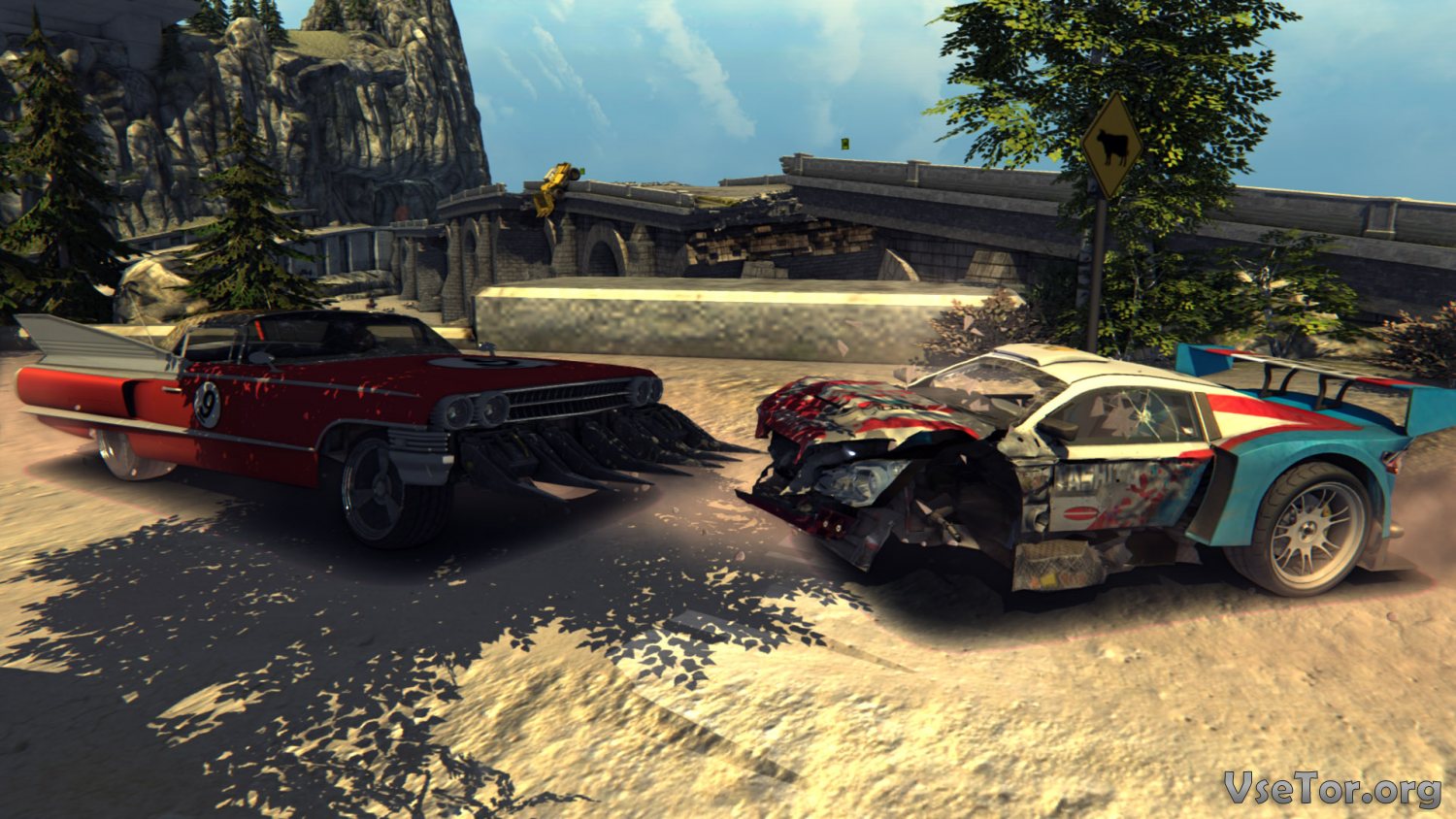 Что до графики и визуального оформления игры, так тут разработчики и вовсе превзошли самих себя. Ими был создан огромный открытый мир, по которому вы можете минуты напролет кататься и так и не встретить соперника. Зато вам будут встречаться пешеходы, кричащие и зовущие на помощь, разрушающиеся объекты и многое другое. И все это при довольно-таки неплохой графике, изобилующей красивыми пейзажами и текстурами высокого качества. У нас вы можете скачать Carmageddon Reincarnation торрент последнюю версию бесплатно на компьютер.