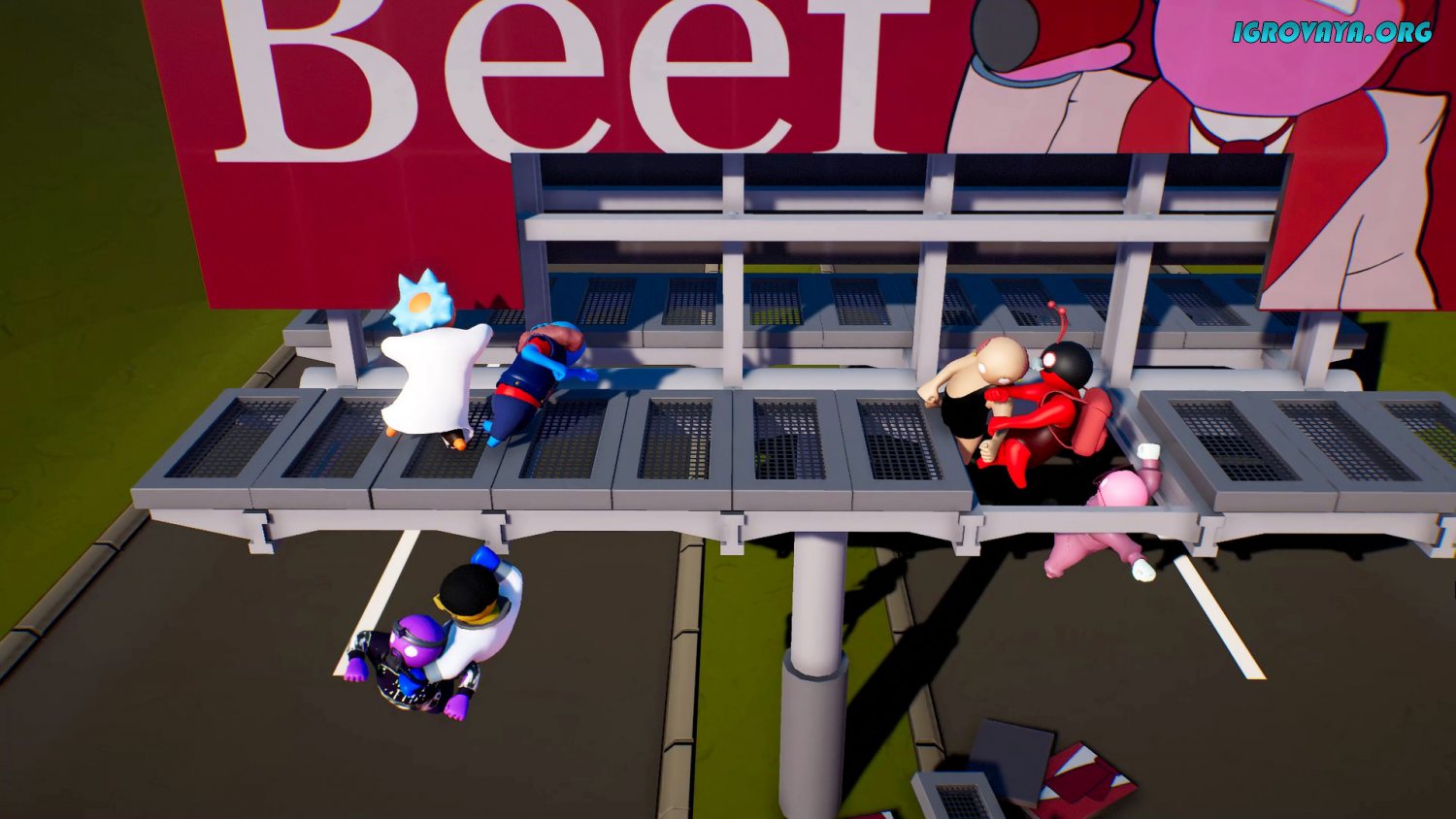 Локации – это одна из важнейших особенностей данной игры. Каждая локация представляет собою нечто вроде «арены испытаний». Где-то вашим дракам будут мешать ездящие в разные стороны машины, где-то вас будут преследовать толпы разъяренных противников, а где-то вашим главным врагом и вовсе будет край арены. Например, сражаясь на крыше небоскреба, вы больше будете думать о том, как бы не упасть с крыши, а не о нанесении урона противникам. Прокачка тут тоже есть, как и продвижение по сюжетной линии, но особо думать об этих аспектах игры вам будет некогда, ведь вы будете по большей части заняты сражениями и беготней по огромным локациям. В общем, будет весело… У нас вы можете скачать Gang Beasts торрент последнюю версию бесплатно на компьютер.