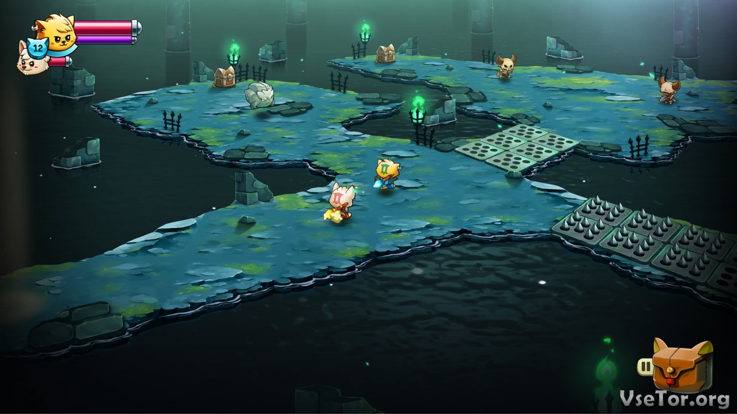 Игровой же процесс в Cat Quest II достаточно прост и предлагает исключительно самые простые механики. Тут вам будут и сражения с многочисленными врагами, и бесконечные миссии и квесты, в ходе которых придется путешествовать по огромному открытому, пусть и двухмерному миру, и ловушки в подземельях, и интересные рандомные события, и не только. Но при этом помимо всего прочего вас будет ждать и много всего другого.