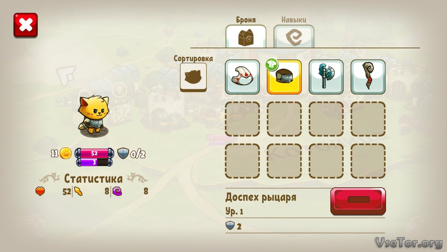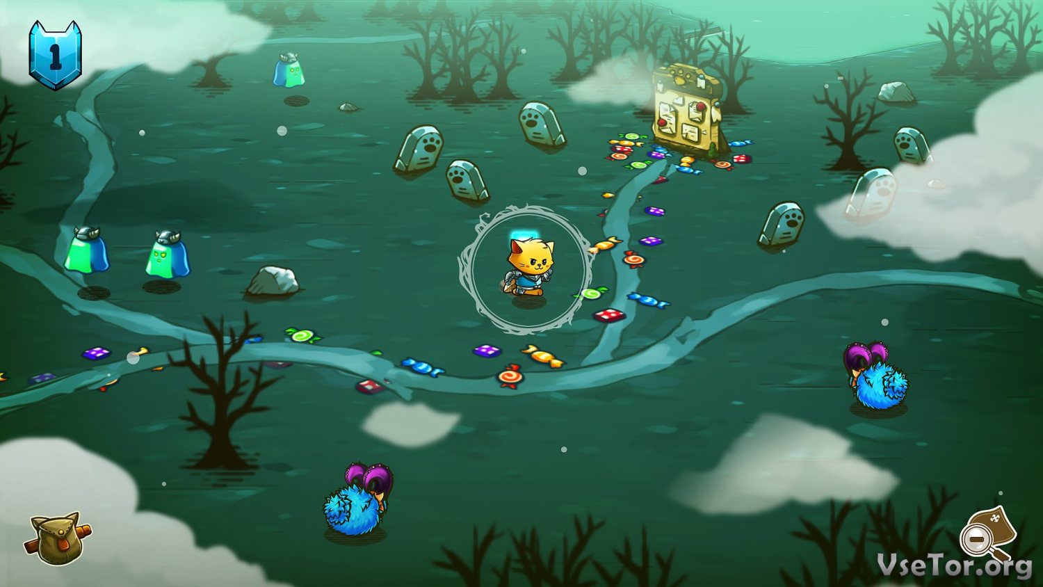Отдельно же стоило бы сказать и о снаряжении. В ходе прохождения игры вы будете натыкаться на врагов, сокровищницы, и крепости. С врагов будут выпадать вещи и разные предметы, а снаряжение и другие не менее важные предметы вы будете находить в самых непредсказуемых местах. Вы сможете найти и хорошее оружие, и доспехи, и зелья, и магические заклинания, и даже полноценные костюмы, которые даже будут давать бонусы к характеристикам. У нас вы можете скачать Cat Quest торрент последнюю версию бесплатно на компьютер.