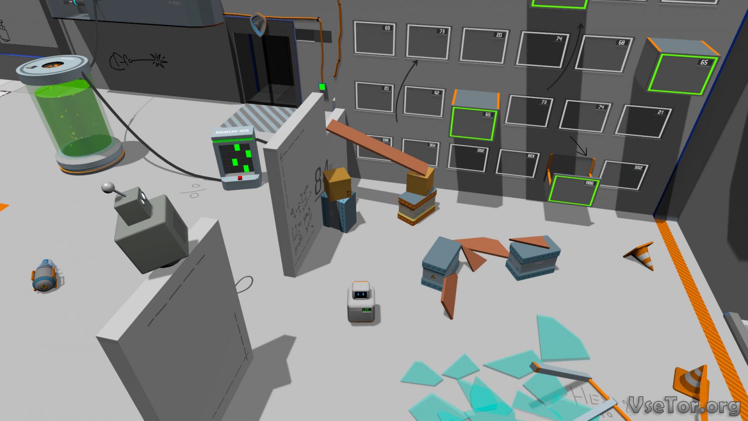 В роли маленького робота вы будете бродить по комплексу и заходить в разные комнаты, в каждой из которых вам будут ждать испытания, головоломки, непростые задачки логического типа, и приключения. В каждой такой комнате вам будет даваться задание – это может быть поиск какого-нибудь предмета, спрятанного за какой-нибудь коробкой на верхней полке, или запуск механизма, или и вовсе починка вышедшей из строя системы. Вариантов много, и каждое новое задание заставит вас использовать какие-либо новые механики.