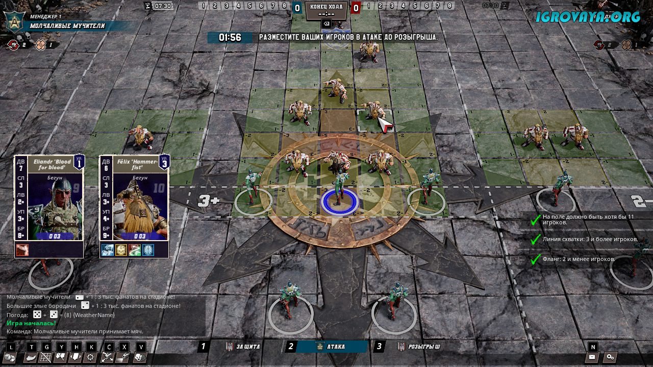 Помимо всего прочего в этой игре вас ждет и море хитростей. обманов, юмора, и веселья. Например, стоило бы сказать о том, что в игре присутствует черный юмор, а также, безумное кровопролитие – у персонажей могут даже отрываться конечности, в то время как травмированные игроки, не отправленные на лечение, и вовсе могут погибать. А еще тут можно подкупать судей, к примеру, во время фола, чтоб тот закрыл глаза на нарушение правил… У нас вы можете скачать Blood Bowl 3 торрент последнюю версию бесплатно на компьютер.