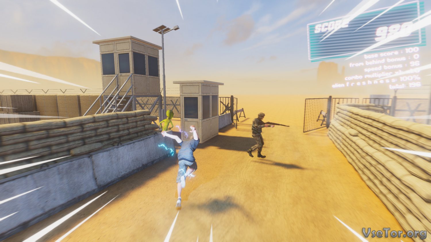 Игровой же процесс тут достаточно прост и понятен. Вы будете в режиме вида от третьего лица управлять героем, имеющим в своем распоряжении уникальные способности. Ваша задача – проникнуть на военную базу и найти как можно больше различных инопланетян, которые могут свободно бродить по территории той самой базы. Все, что вам нужно, это подойти и ударить инопланетянина. Но сделать это будет непросто, и как минимум по нескольким реальным причинам…