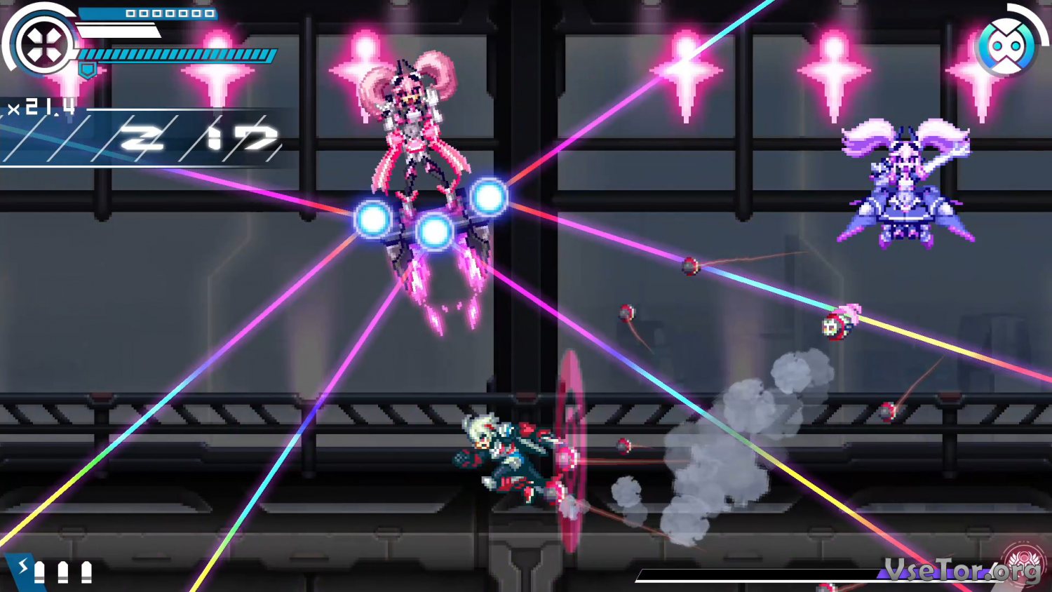 А еще вас наверняка порадует необычный стиль подачи сюжетной линии, отличная озвучка. разнообразие уровней и врагов, и графика, пестрящая яркими цветами и многочисленными спецэффектами. У нас вы можете скачать Gunvolt Chronicles: Luminous Avenger iX торрент последнюю версию бесплатно на компьютер.