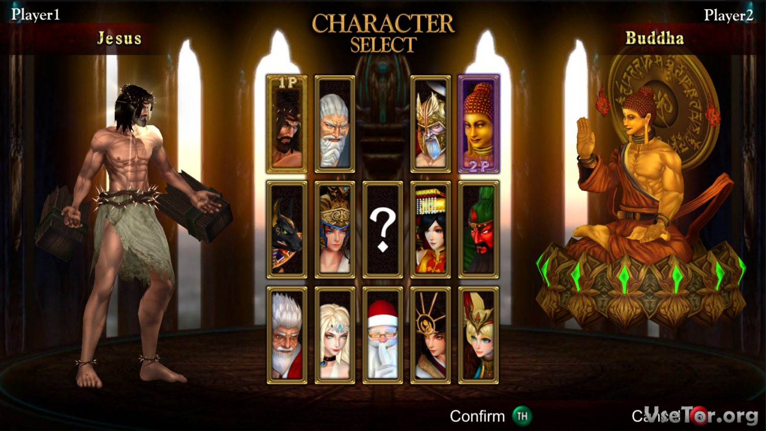 Каждый персонаж здесь по-своему уникален и дерется в своем уникальном стиле. например, есть Иисус, который в качестве оружия использует обломки креста и лозу – он может наносить мощные и сокрушительные удары обломками креста, и не только. Также есть Будда, который уничтожает своих врагов с помощью Просветления. Помимо них присутствует и огромное количество других божеств. Это и древние египетские Боги, и греческие божества, и многие другие не менее известные личности. А в будущем разработчики обещают добавить еще и Аллаха, и других божеств.