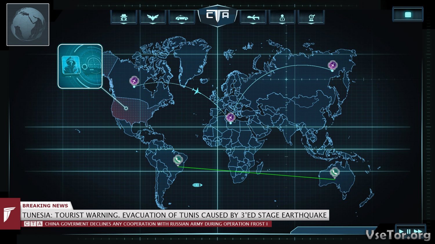Что до игрового процесса, так он в Counter Terrorist Agency довольно прост, по крайней мере, на первый взгляд. перед вами будет открыта карта мира, на которой будут отображаться маршруты следования самолетов, в частности, пассажирских, а также многочисленные датчики, индикаторы и многое другое. Вы должны будете следить за движением самолетов, прослушивать подозрительные телефонные звонки, устраивать допросы, и продумывать секретные спецоперации, в ходе которых будут задерживаться потенциальные террористы.