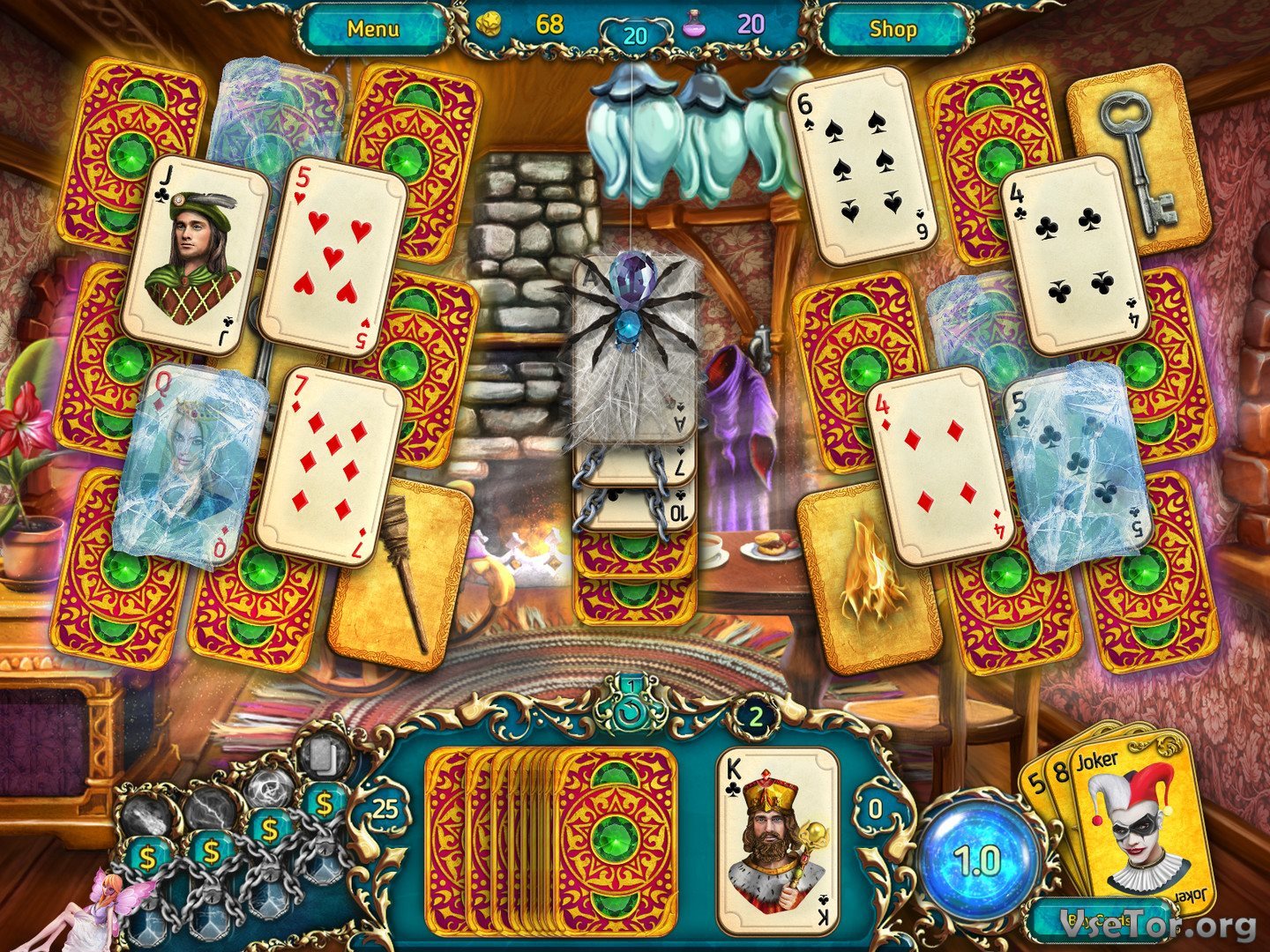 Как эти два направления связаны? Очень просто! раскладывая пасьянс, вы будете находить под некоторыми картами различные бонусы, например, ману, которая понадобится вам для того, чтоб воспользоваться какими-нибудь магическими заклинаниями и выполнить очередное квест-задание. Вот таким вот простым способом и будет решаться основная часть задачек…