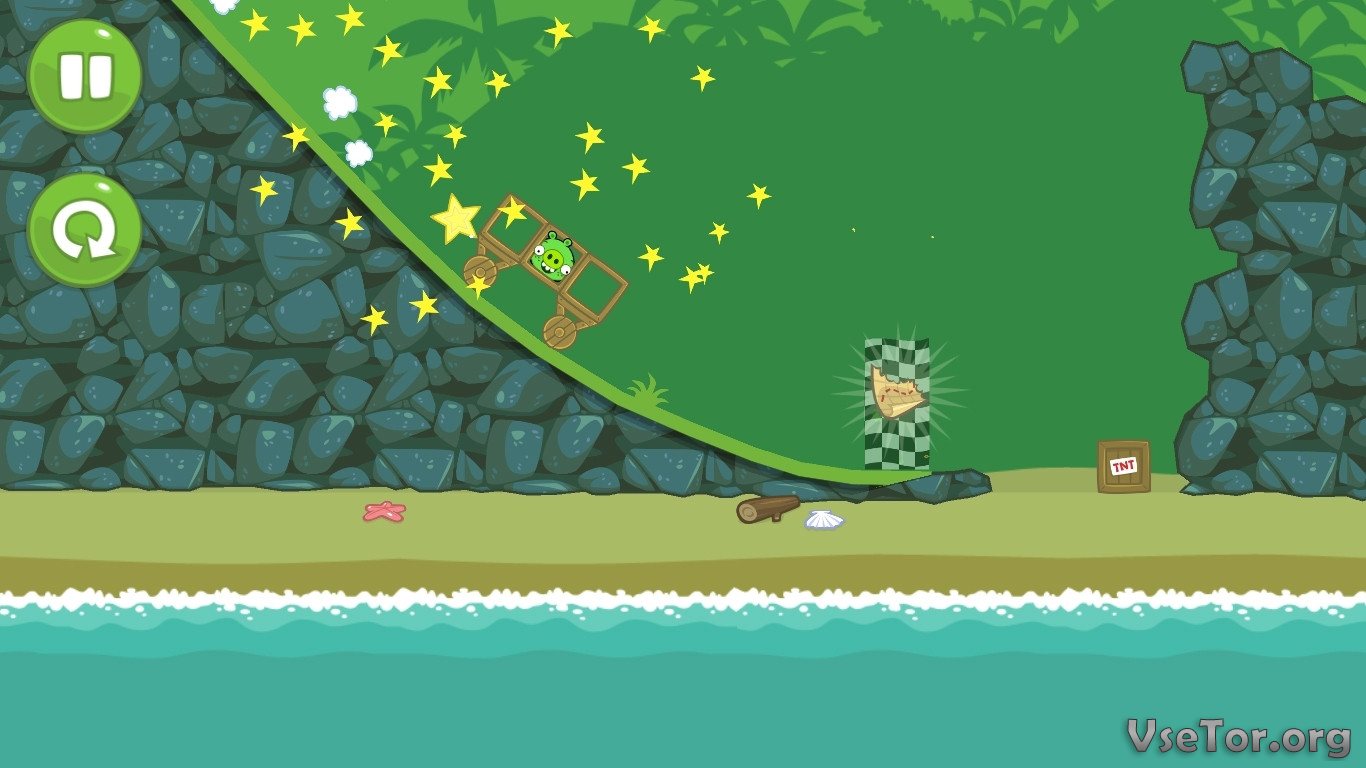 Ну а в остальном все еще круче – после того, как транспортное средство построено, вы можете отправляться за яйцами. Но не думайте, что будет просто – вы будете разбиваться, ваше транспортное средство будет рассыпаться на глазах, а свиньи будут и вовсе летать по локациям, как воздушные шарики. В общем, будет весело… У нас вы можете скачать Bad Piggies торрент последнюю версию бесплатно на компьютер.