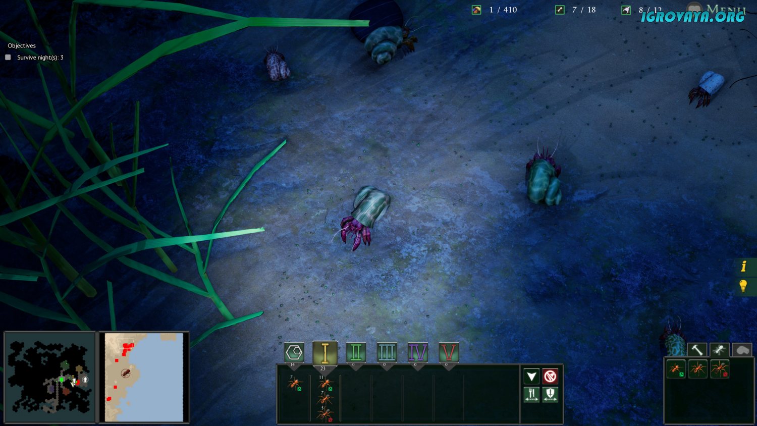 Итак, в вашем распоряжении целый муравейник и вам нужно сделать все возможное для того, чтоб представители вашей колонии выжили в этом опасном и полном ужасов мире. Казалось бы, что сложного в том, чтобы строить муравейник и создавать юнитов? Но на самом деле все далеко не так, как кажется. Во-первых, вам придется заниматься самим муравейником. А сюда входит не только его строительство, но также и продумывание систем тоннелей, и выкапывание новых секций, и многое другое. Во-вторых, вам нужно будет заниматься колонистами – муравьями. А это тоже порою не так уж и легко, ведь нужно заботиться о них, делать так, чтоб появлялись новые муравьи, следить за запасами пиши и ресурсов, и не только. Ну а в-третьих, придется воевать.