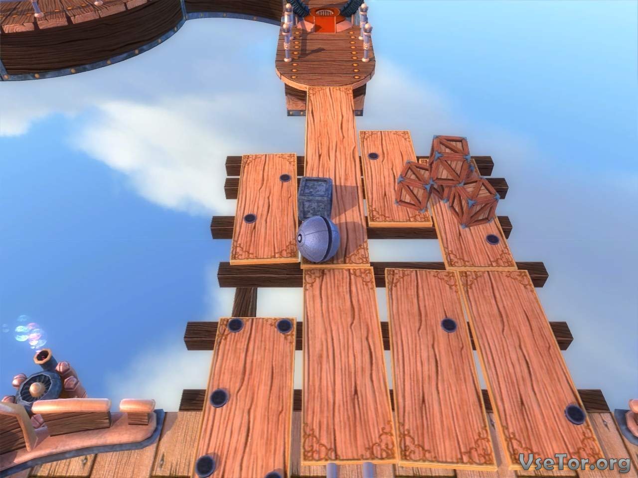Преграды и головоломки в Switchball, это и вовсе отдельная тема. Преграды, к примеру, бывают здесь разными – это может быть вращающаяся по своей оси спираль, расположенная прямо на вашем пути, или вращающиеся стержни, что могут сбросить вас с очередного моста, или и вовсе что-нибудь необъяснимое. Ну а головоломки и вовсе могут быть неописуемо необычными – одна может быть связана с запуском необычного механизма, а другая с воздействием на предметы из окружения.