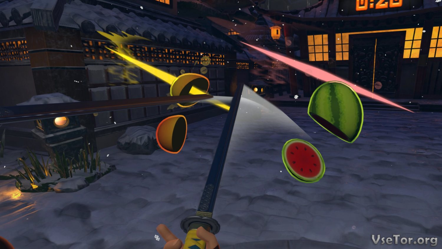 Режьте фрукты в виртуальной реальности в Fruit Ninja VR и устанавливайте рекорды, участвуйте в состязаниях, попробуйте внести свое имя в рейтинговую таблицу и просто получайте удовольствие, чувствуя себя самым настоящим ниндзя. У нас вы можете скачать Fruit Ninja VR торрент последнюю версию бесплатно на компьютер.