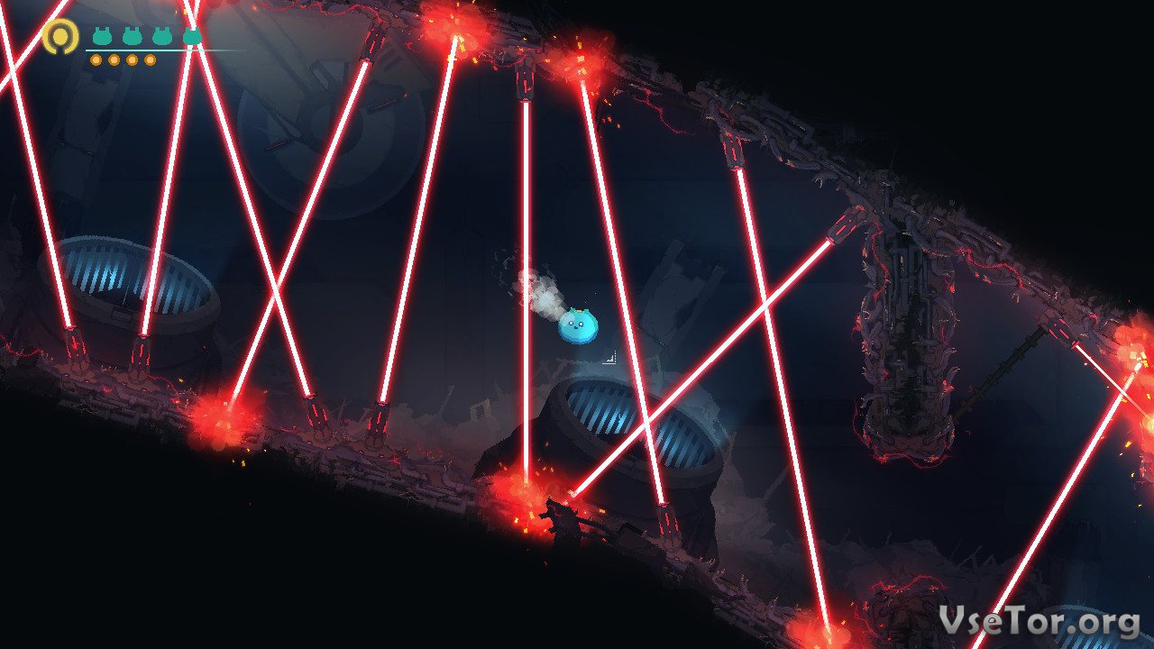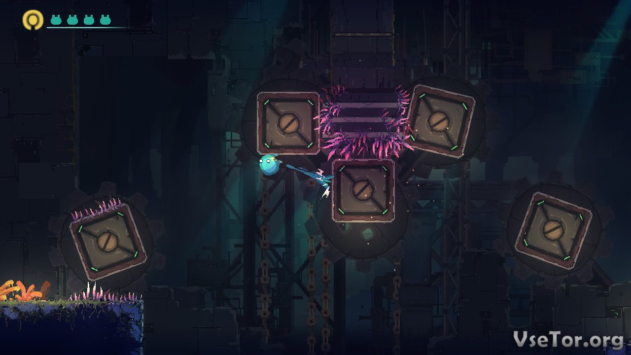 Самое же интересное здесь то, как именно происходит все вышесказанное. Главный герой этой игры, это необычное шарообразное существо, умеющее прилипать к поверхностям плоскостей, парить в воздухе, и запускать себя, словно снаряд, запущенный рогаткой. Вот используя эти умения вы и будете проходить уровни. Где-то вам придется парить над пропастью, где-то нужно будет прыгать между крутящимися похожими на циркуляционные пилы приборами, а где-то и вовсе придется просто искать выход. И везде вас будете ждать что-то новое…