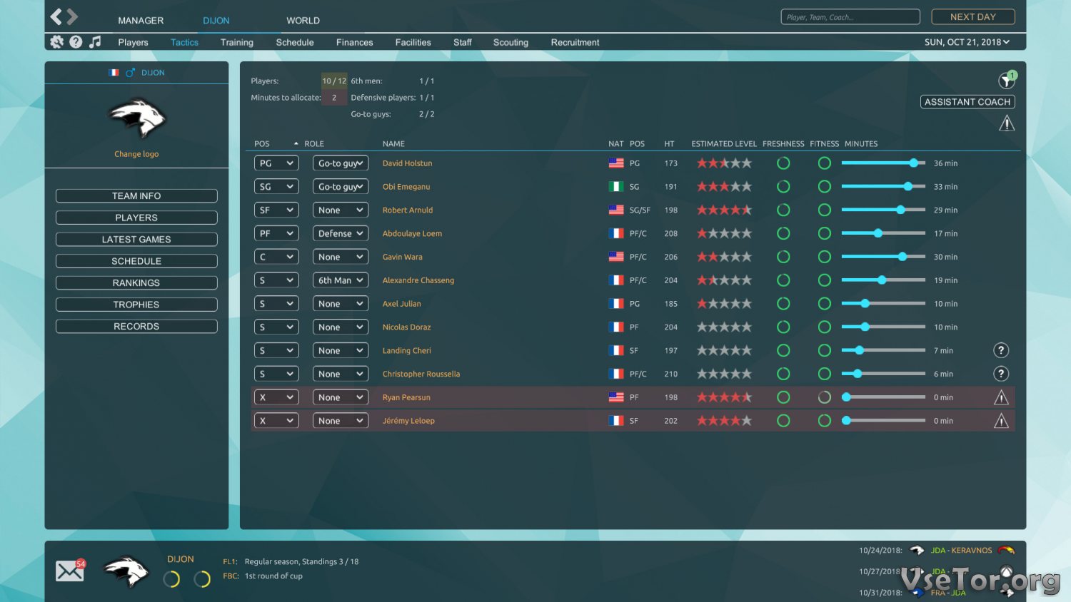 Но заниматься придется не только составом команды и набором. Помимо этого, вам придется заниматься и играми, следя непосредственно за матчами, и ареной, которую вы будете менять на свое усмотрение, и даже тренировками, на которых лично будете решать, кому и что отрабатывать, кому и какие нагрузки давать.