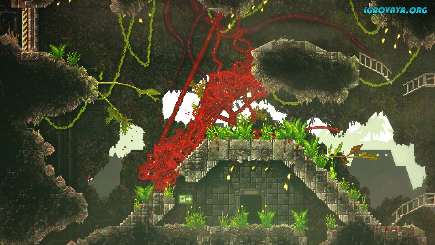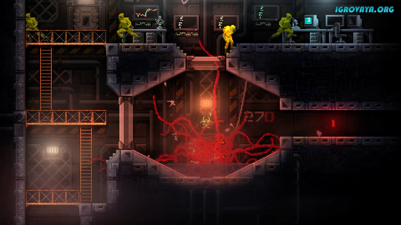 Carrion – это хоррор с видом сбоку, кровавый, жестокий, и очень атмосферный. Но играть вы здесь будете не за обычного человека, борющегося с монстрами, а как раз-таки за того самого монстра…