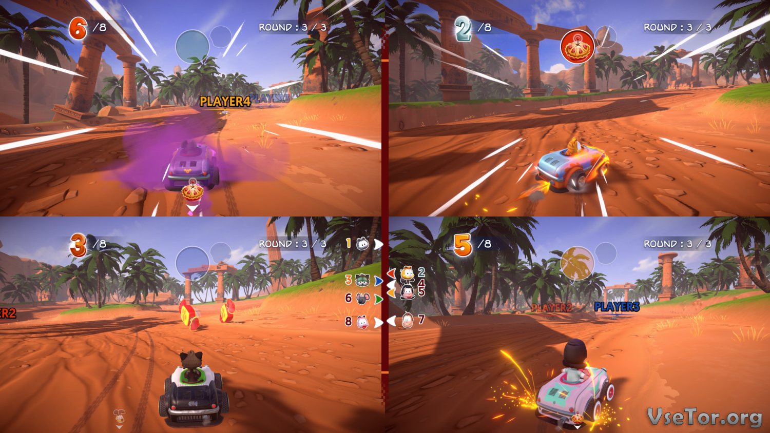 Еще стоило бы сказать о персонажах. В вашем распоряжении будет 8 разных уникальных персонажей, у каждого из которых припрятаны свои козыри в рукаве. Кроме того, вы сможете еще и персонализировать каждого персонажа так. как вам захочется, украсить его болид аксессуарами, и изменить внешность героя.