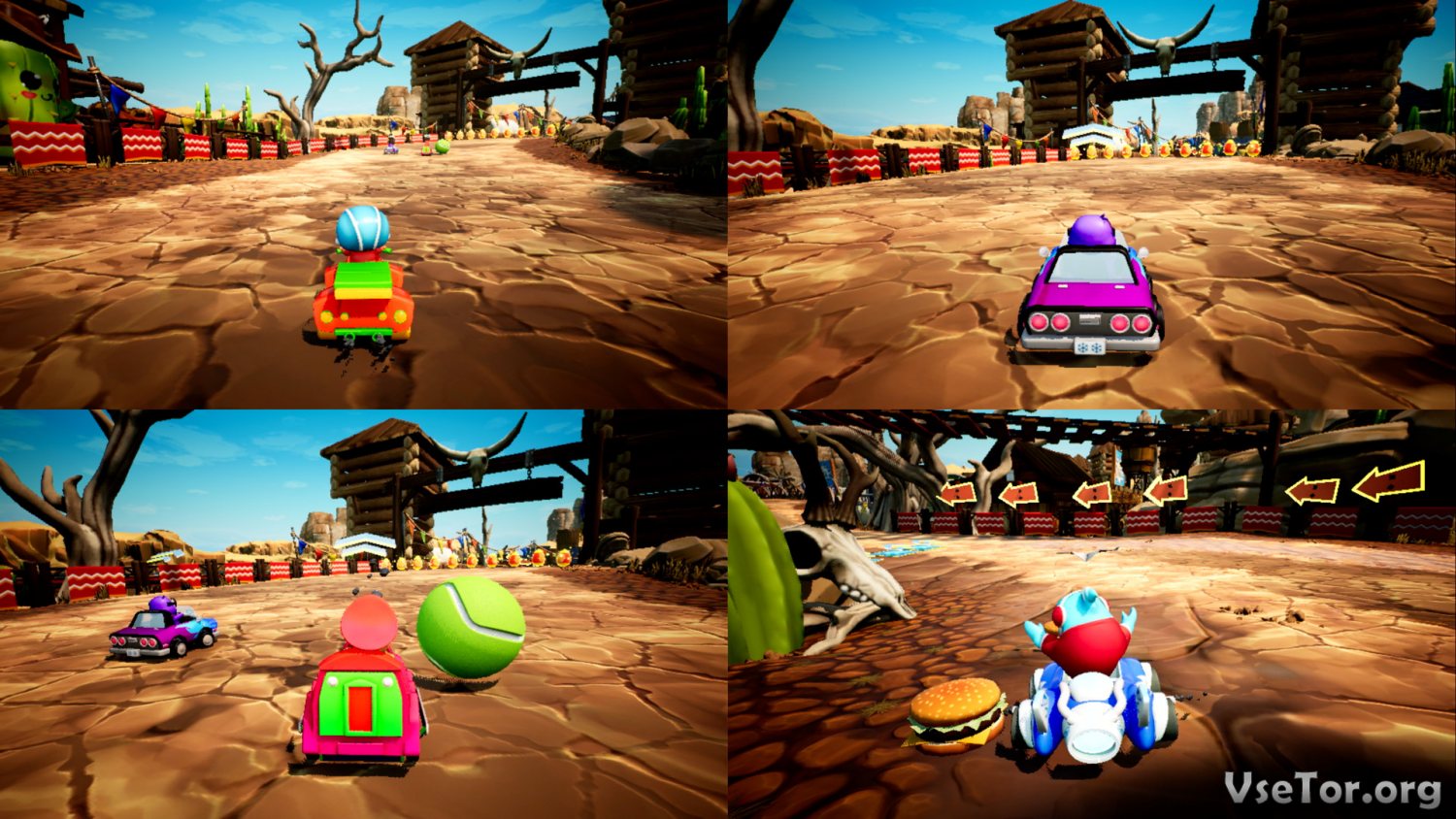 Еще в Race With Ryan вас ждет просто невероятное количество разнообразных авто, на которых вы сможете участвовать в гонках. Причем, это не реалистичные гоночные тачки, а самые нелепые модели. Это может быть ездящий на колесах вертолет, пиратская лодка, обычный грузовичок, парусник, бульдозер, или еще что-нибудь не менее интересное. И плюс ко всему вас ждет с десяток персонажей, и большинство из них покажутся вам знакомыми. У нас вы можете скачать Race With Ryan торрент последнюю версию бесплатно на компьютер.