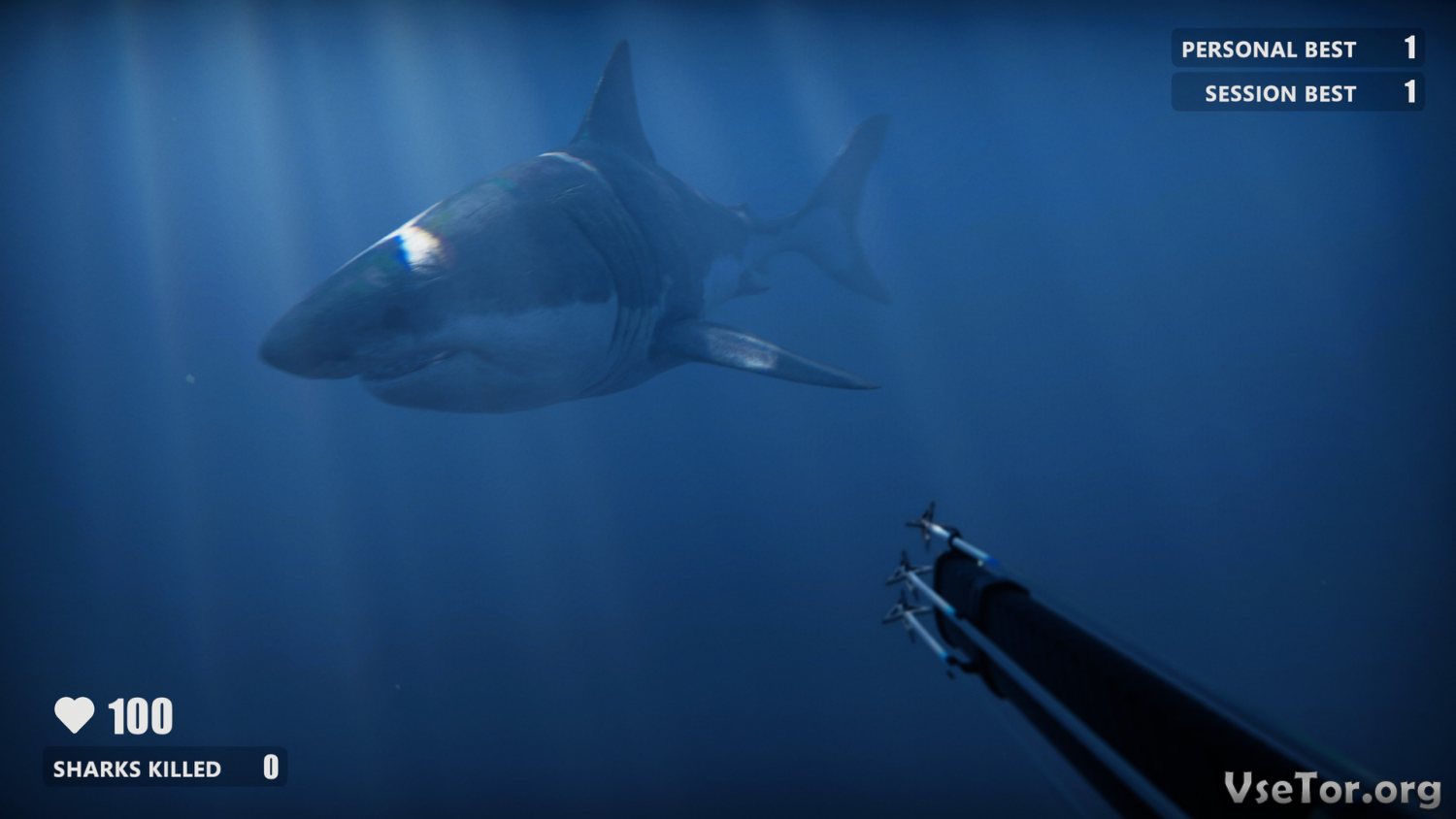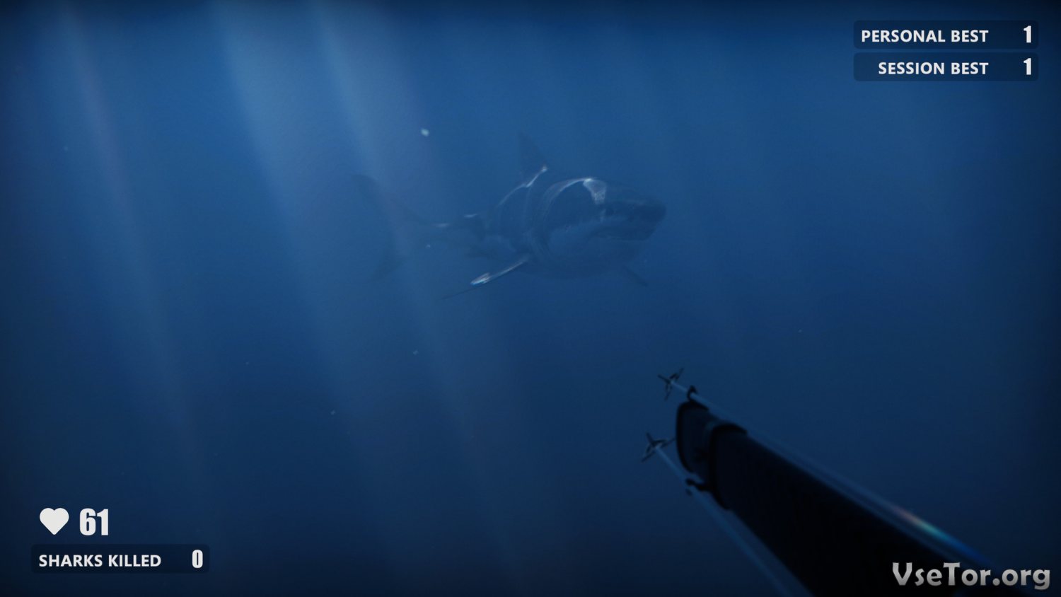 Игровой процесс здесь достаточно прост и основывается на управлении водолазом в режиме вида от первого лица. Вы окажитесь посреди океанских вод на большой глубине и будете выживать. Белые акулы здесь обитают в достаточно большом количестве и будут постоянно нападать на вас, а вы же должны будете отбиваться от них, что не так уж и просто. Мало того, что в вашем распоряжении не будет никакого мощного оружия, так еще и находитесь вы явно не в своей родной стихии. Вот и попробуйте выжить в таких условиях.