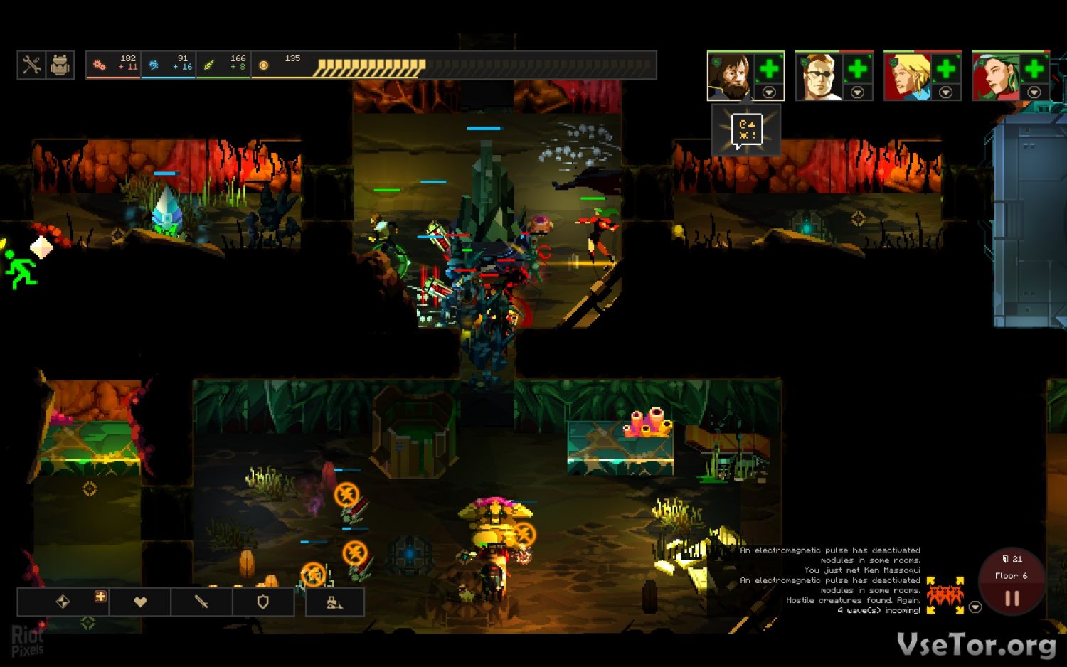 Кстати о персонажах – в ходе прохождения игры вы сможете разблокировать более трех десятков персонажей, и каждый будет обладать своими уникальными способностями и навыками. Но помните, смерть в Dungeon of the Endless перманентна, а значит, персонажи будут умирать навсегда. У нас вы можете скачать Dungeon of the Endless торрент последнюю версию бесплатно на компьютер.