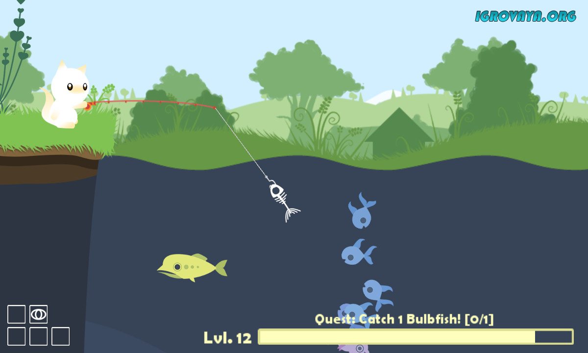 События игры происходят на не очень обычном водоеме, куда вы и отправитесь в роли котика. Цель проста – нужно наловить как можно больше рыбы. Но не думайте, что придется просто сидеть и ловить рыбу, выжидая, пока она клюнет. здесь все в разы интереснее. Тут вам придется наблюдать за снастями даже глубоко под водой, изучать поведение разных пород рыб, и не только.