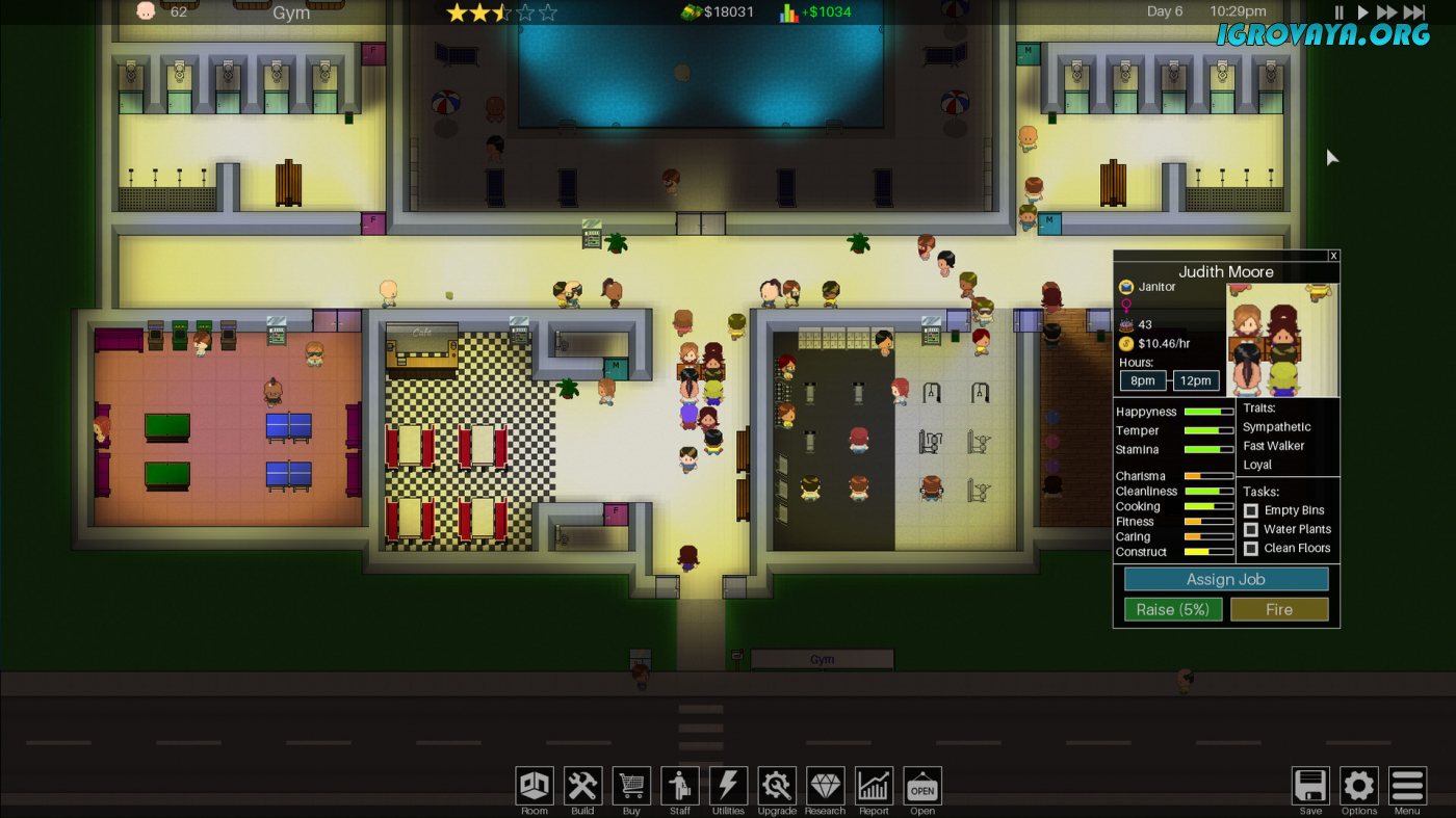Уже через некоторое время вы сможете заработать первые деньги и начать развивать центр. Сначала вы сможете перестроить само здание, достроить новых помещений, и нанять еще больше персонала, а затем вам станут доступными другие не менее важные элементы. Например, вы сможете оборудовать фитнес-зал, затем столовую или ресторан, а потом и вовсе построить бассейн. Вариантов более, чем предостаточно. Ну а помимо всего прочего вам придется заниматься и самими клиентами, и сотрудниками. каждый из которых обладает своим уникальным характером, и многим-многим другим. У нас вы можете скачать Rec Center Tycoon торрент последнюю версию бесплатно на компьютер.