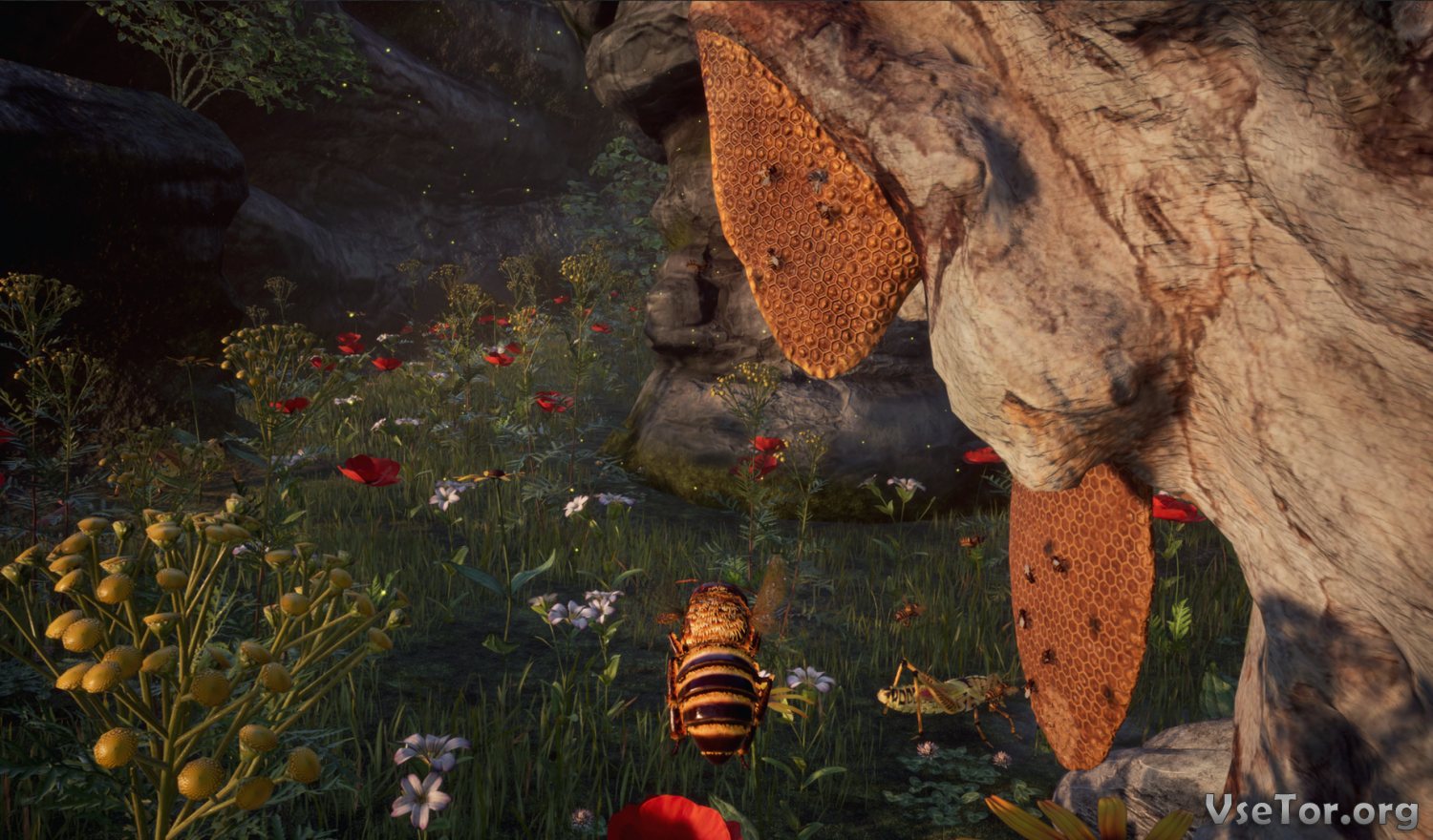 События игры происходят на просторах огромного открытого свободного мира, по которому вы сможете перемещать в свое удовольствие. ну а вам же придется взять под свой контроль самую обычную пчелу, которая живет лишь одной единственной целью – приносить пользу улью и выживать. ну а дальше все еще круче – вам придется добывать пыльцу, обучать других пчел тонкостям полета, и делать многое-многое другое.