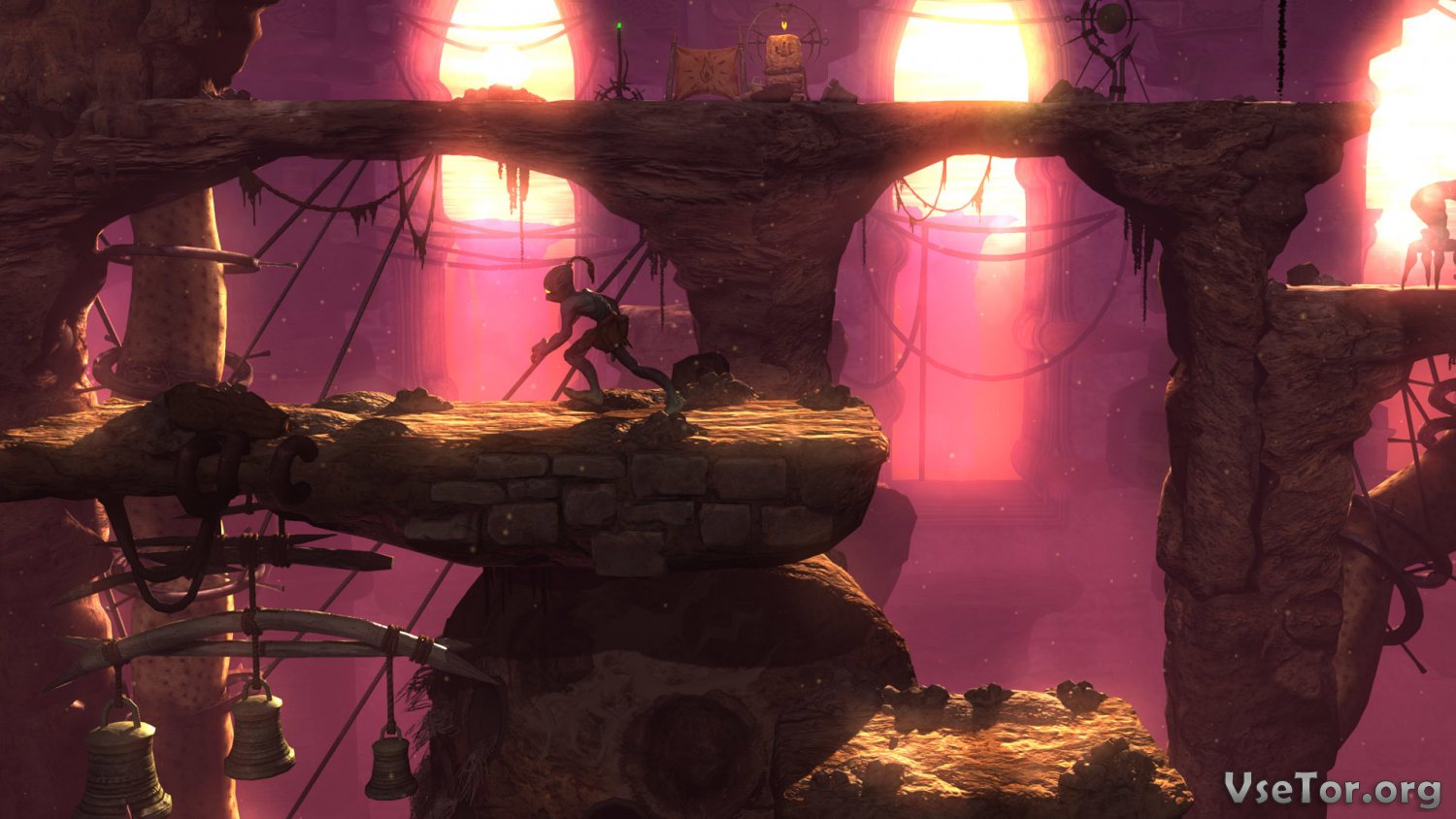Самое же интересное заключается в том, что большую часть уровней тут придется проходить в спешке. Если на некоторых уровнях будет достаточно лишь просто двигаться вперед и преодолевать различные препятствия, то на других уровнях придется быстро бежать, прыгать по платформам, и сражаться с врагами, которые будут преследовать Эйба целой толпой. Порою, эта хардкорность как раз и будет толкать вас на ошибки, приводящие к смерти, но именно это-то и очаровывает. Адреналин, бегство, ловушки, вечная хождение по краю – вот то, что в этой игре первым делом стоило бы отнести к особенностям геймплея.