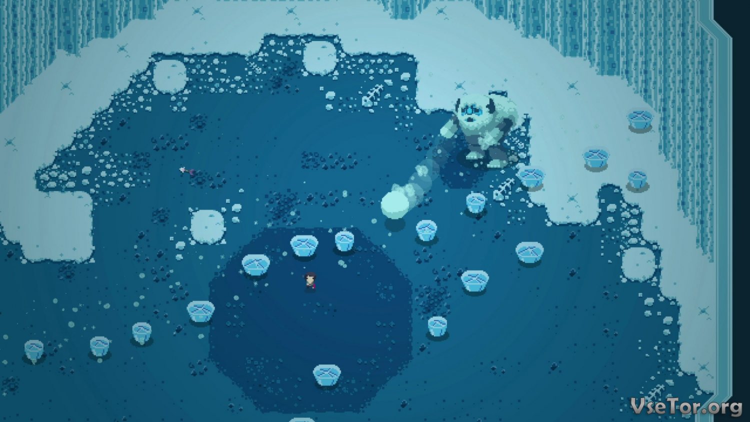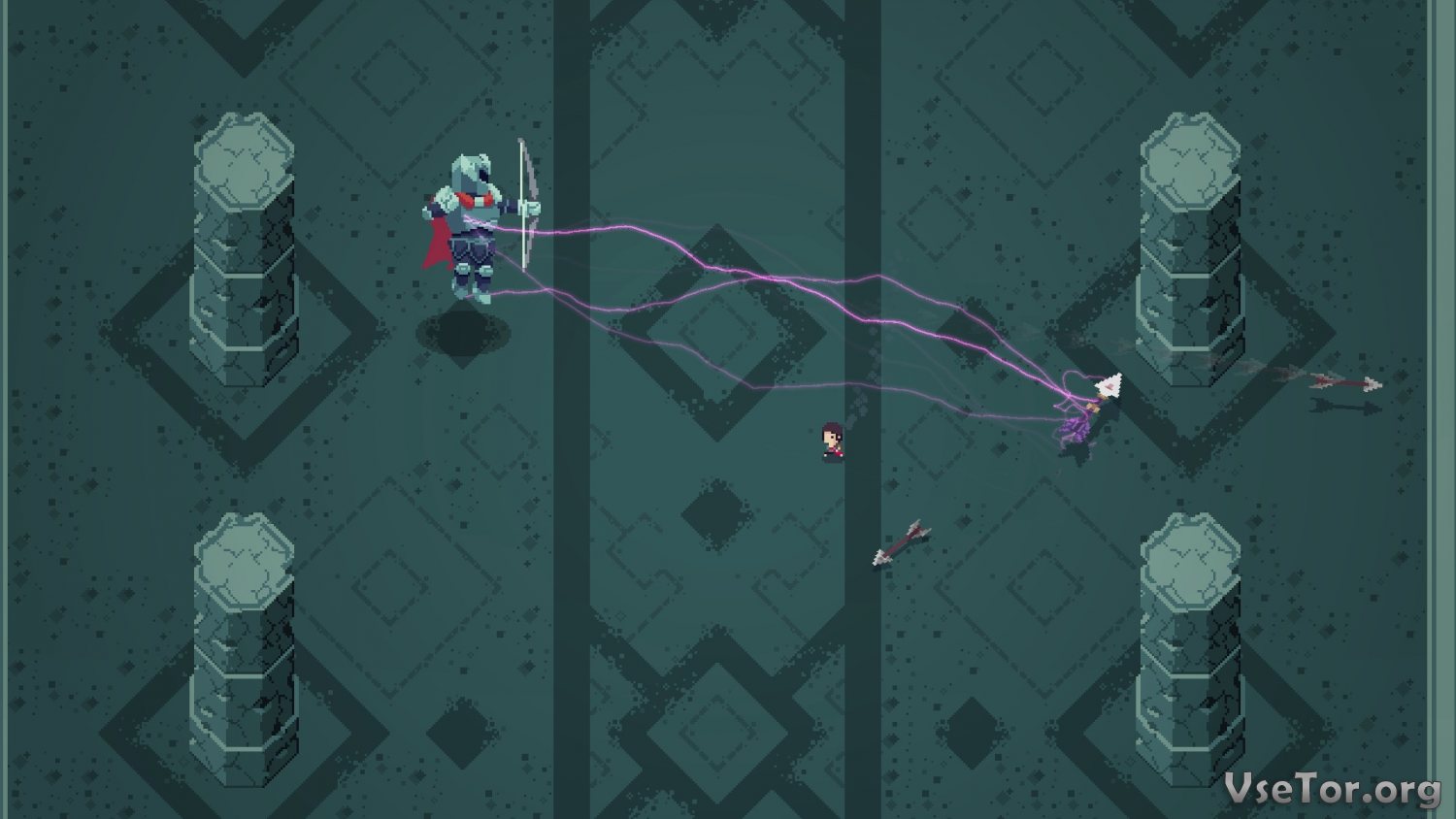 Что действительно заставит понервничать в Titan Souls каждого без исключения, так это сражения с боссами. Боссы, Титаны, в этой игре сильны и могут убить героя всего лишь одним ударом, одним единственным прикосновением, и точно также и герой может убить боса всего одним попаданием стрелы. Но есть и одно «но» - убить Титана можно только в случае, если удастся выяснить его уязвимое место и попасть в него стрелой. Но сделать это нелегко, во-первых, потому, что сами боссы слишком быстры и сильны, а во-вторых, из-за того, что механика стрельбы здесь довольно сложна. Плюс, у вас всего одна стрельба, и в случае промаха вам придется ждать ее возвращения или бежать лично за ней, что не всегда удобно.