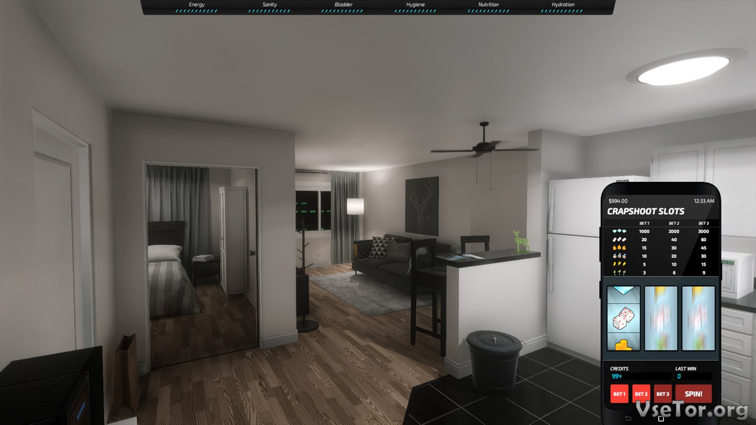 Самое приятное в этой игре, это разнообразие процессов и задач. Но начнем с самого главного – например, вам нужно будет где-то спать и отдыхать, и вы должны будете решить, на что потратить заработанные деньги, на обычное арендованное жилье, на дорогую квартиру, если хватит денег, или на что другое. Причем, выбирать есть из чего. Вы можете даже просто ночевать в подвальных помещениях метро.